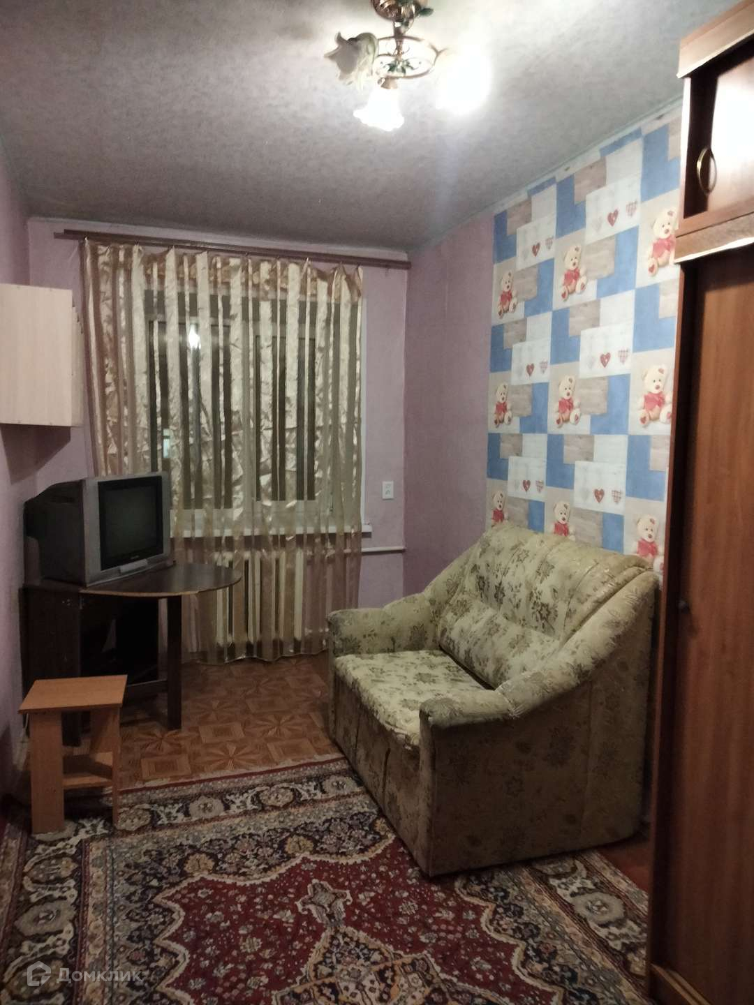 Дом находится в центре города, напротив ТЦ Пушкинский. Чистые места общего пользования, комната отремонтирована, есть холодильник, телевизор, диван, шкаф.