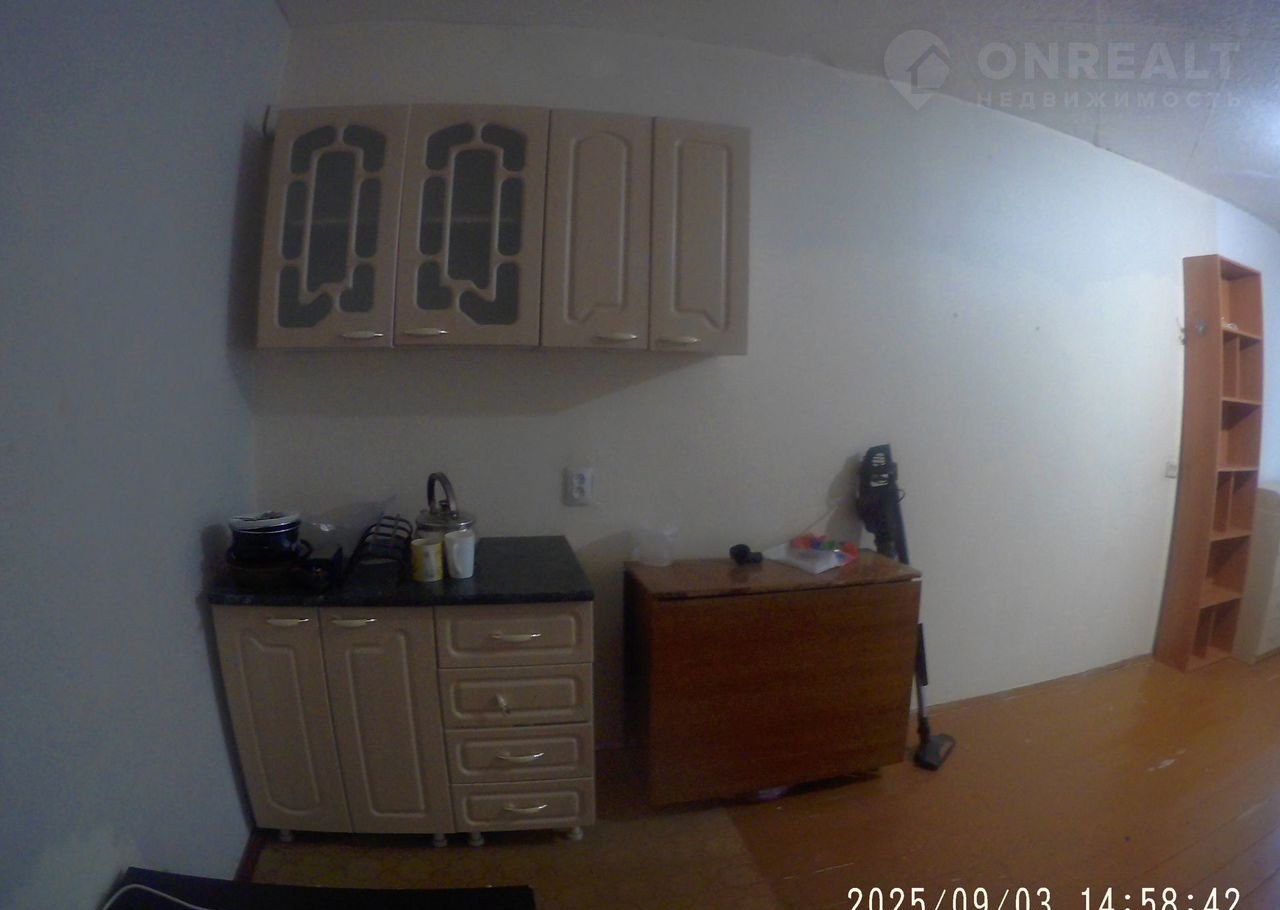 Просторная комната в общежитии, горячая вода, ванна, кухня с газовой плитой, в комнате пластиковое окно, дверь железная, кухонная мебель, диван, комод, стол, стойка-вешалка, дополнительно только свет. Залог 2т.