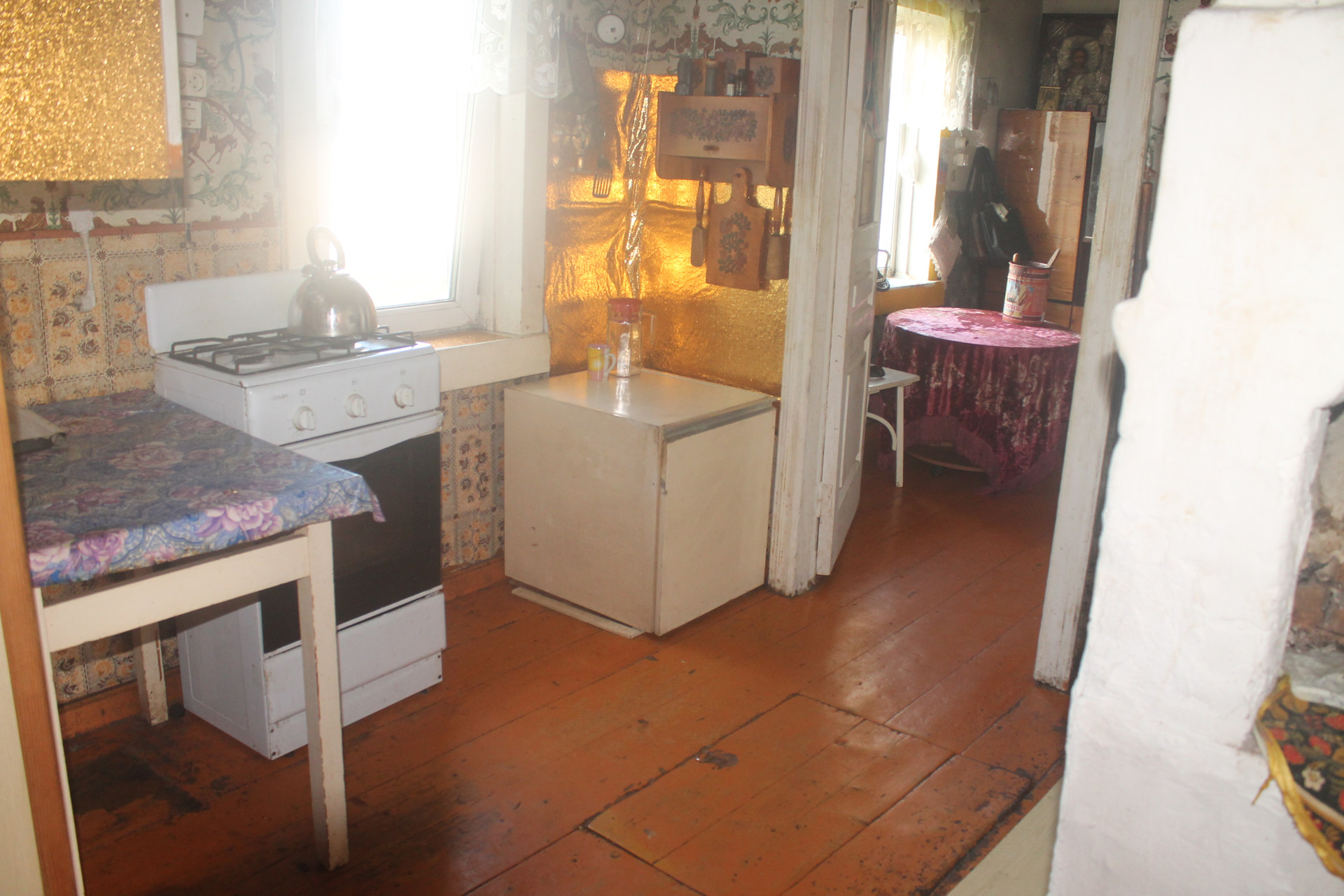 В доме 3 комнаты и кухня. Туалет тёплый в доме, имеется водонагреватель. Вода в доме городская и ключевые, газ балоны, отопление печное. Дом расположен рядом с рекой.