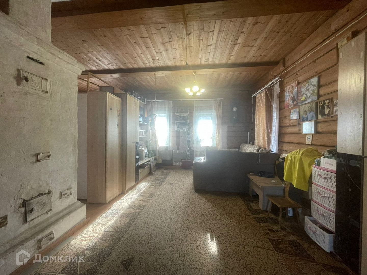 Продается одноэтажный бревенчатый дом с земельным участком 8 соток в г. Кадников. Общая площадь дома – 96,4 кв.м., площадь земельного участка – 8 соток.