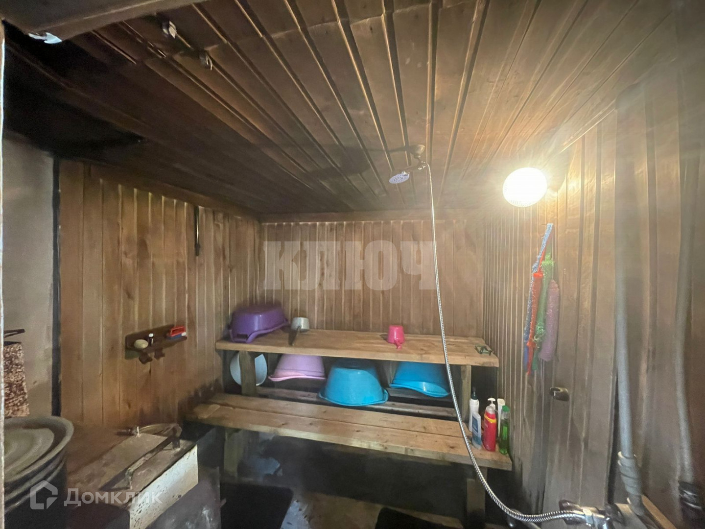 - На участке есть баня из шлакобетона 6*3м, внутри обшита осиновой вагонкой, в баню заведена вода, сделан душ.