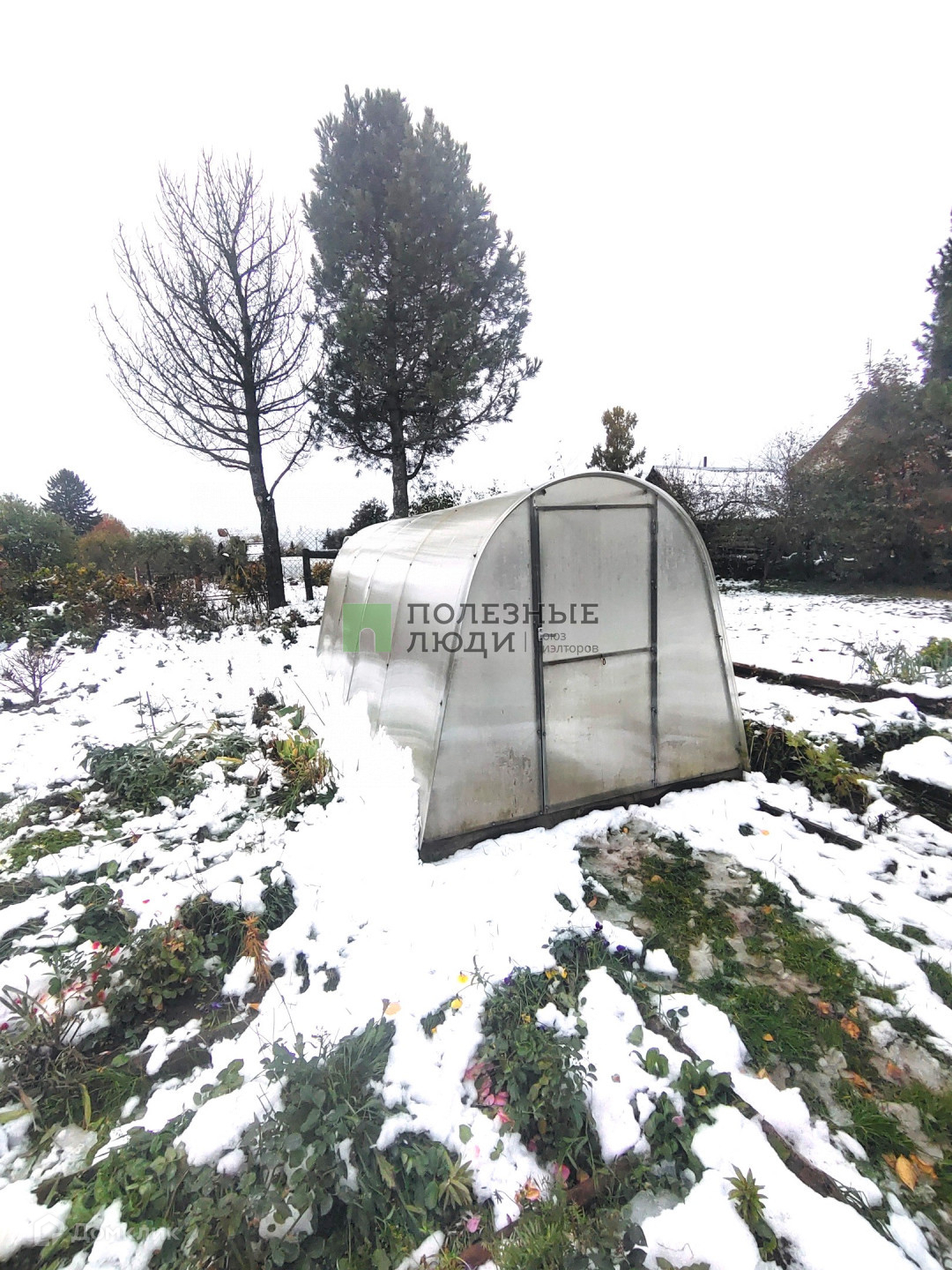 Участок сухой, с разработанными грядками и теплицей. Множество насаждений ( яблони, малина, смородина).