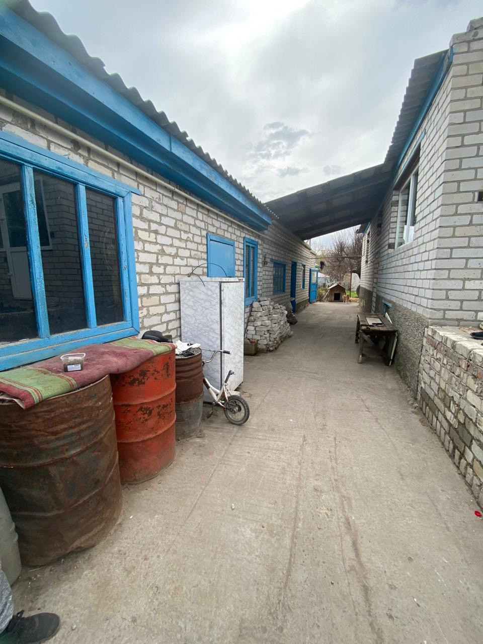 Во дворе гараж, кирпичные хозпостройки.