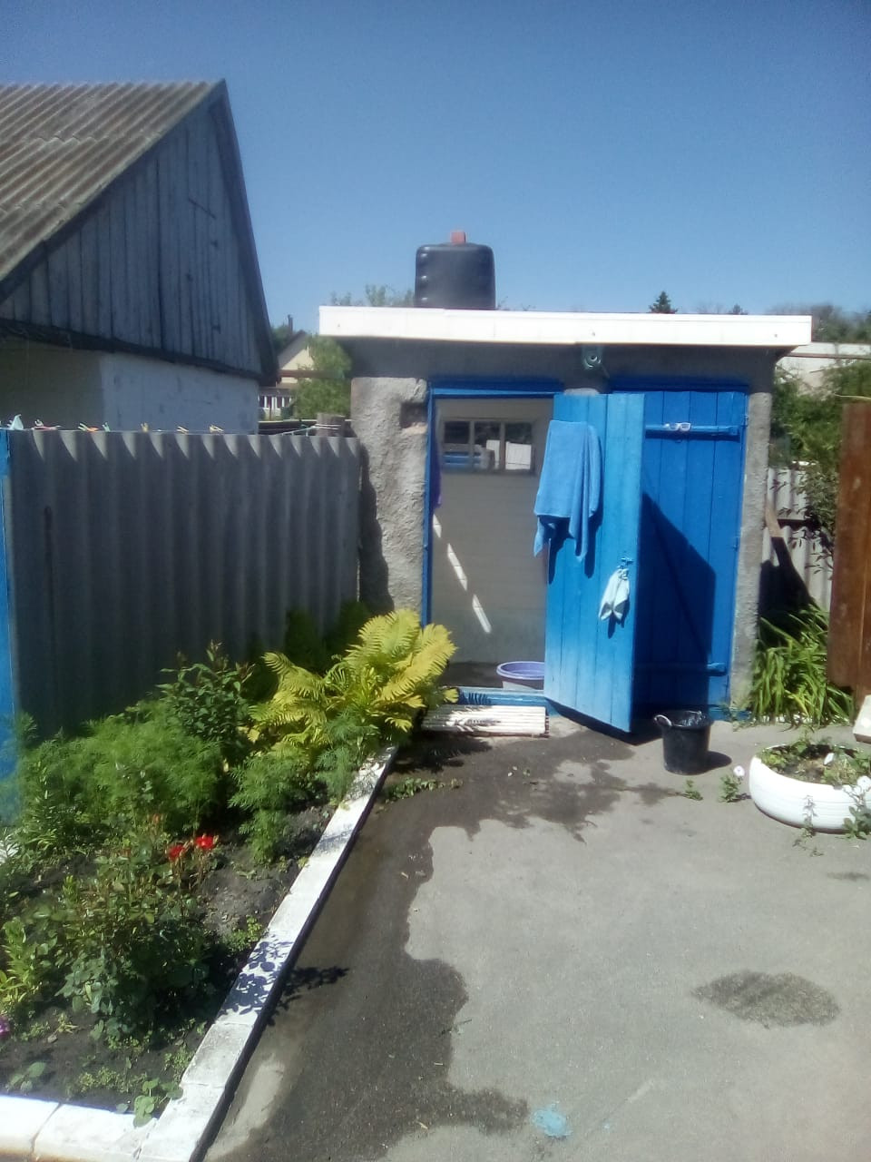 На участке помимо дома находятся: летняя кухня, сарай, курятник, летний душ, туалет, гараж и парковочное место на два автомобиля