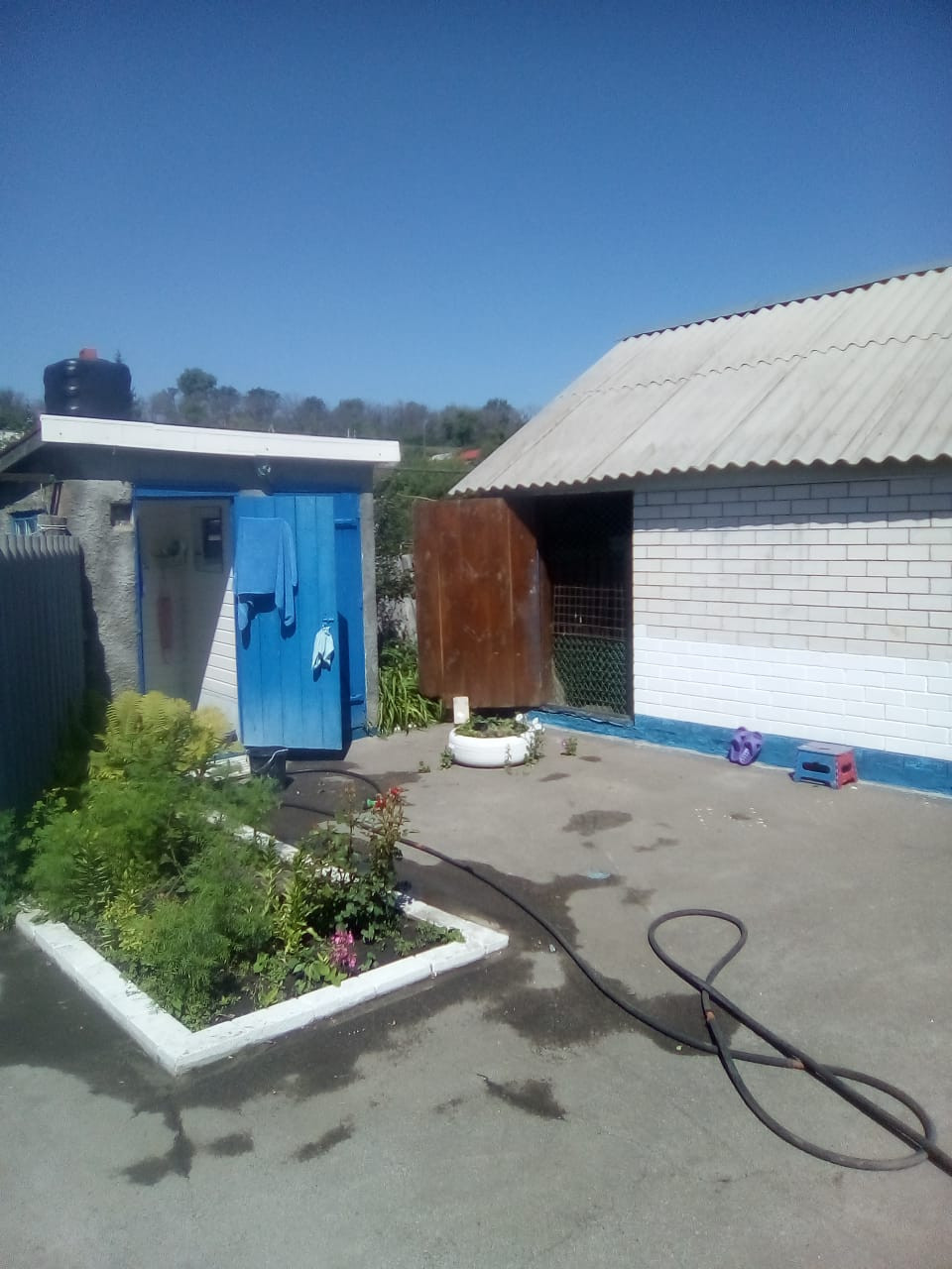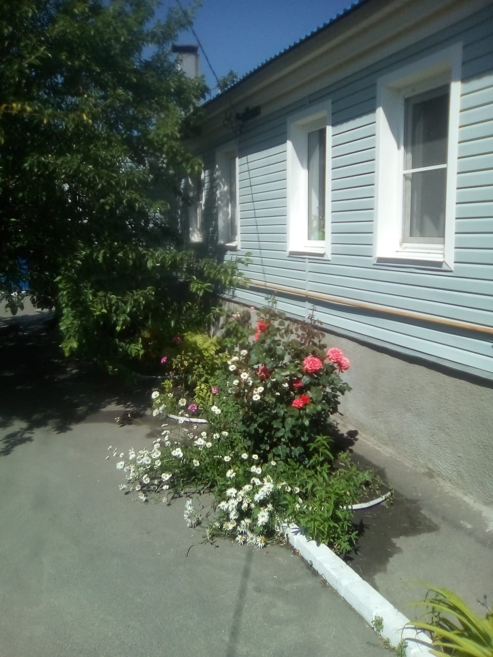 Так же растет шикарная, плодоносящая яблоня, в тени которой очень комфортно проводить жаркие обеденные часы))