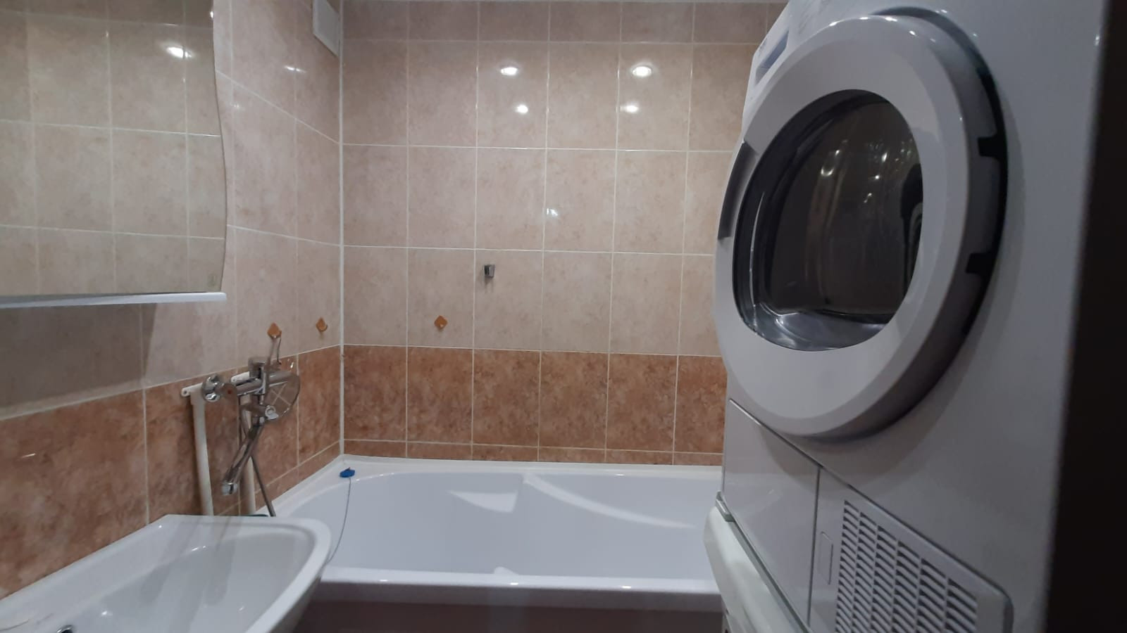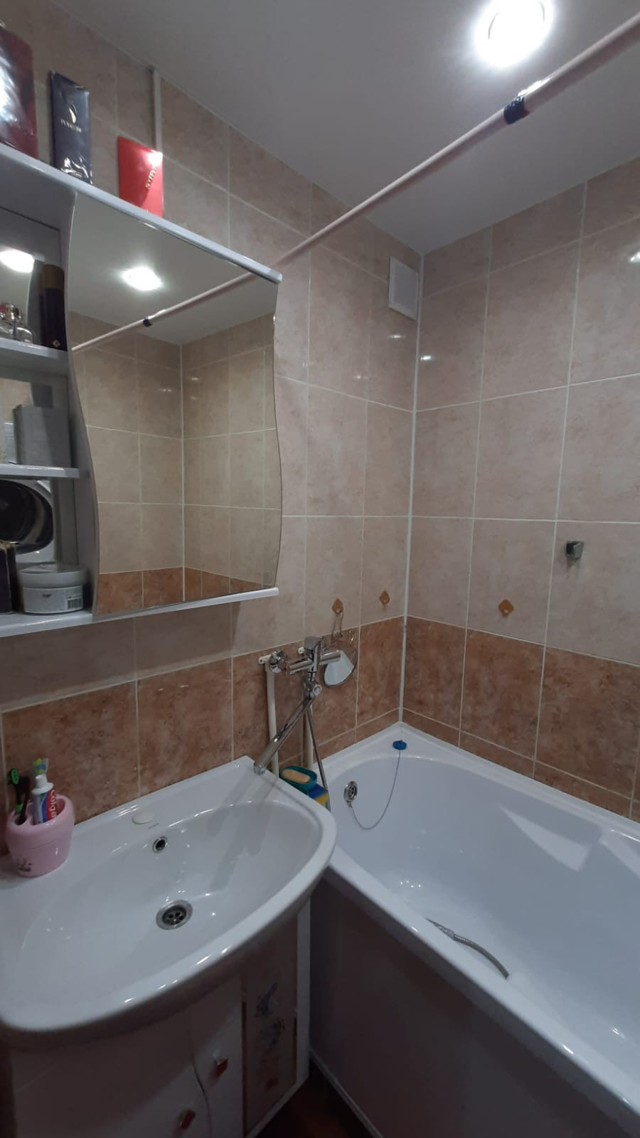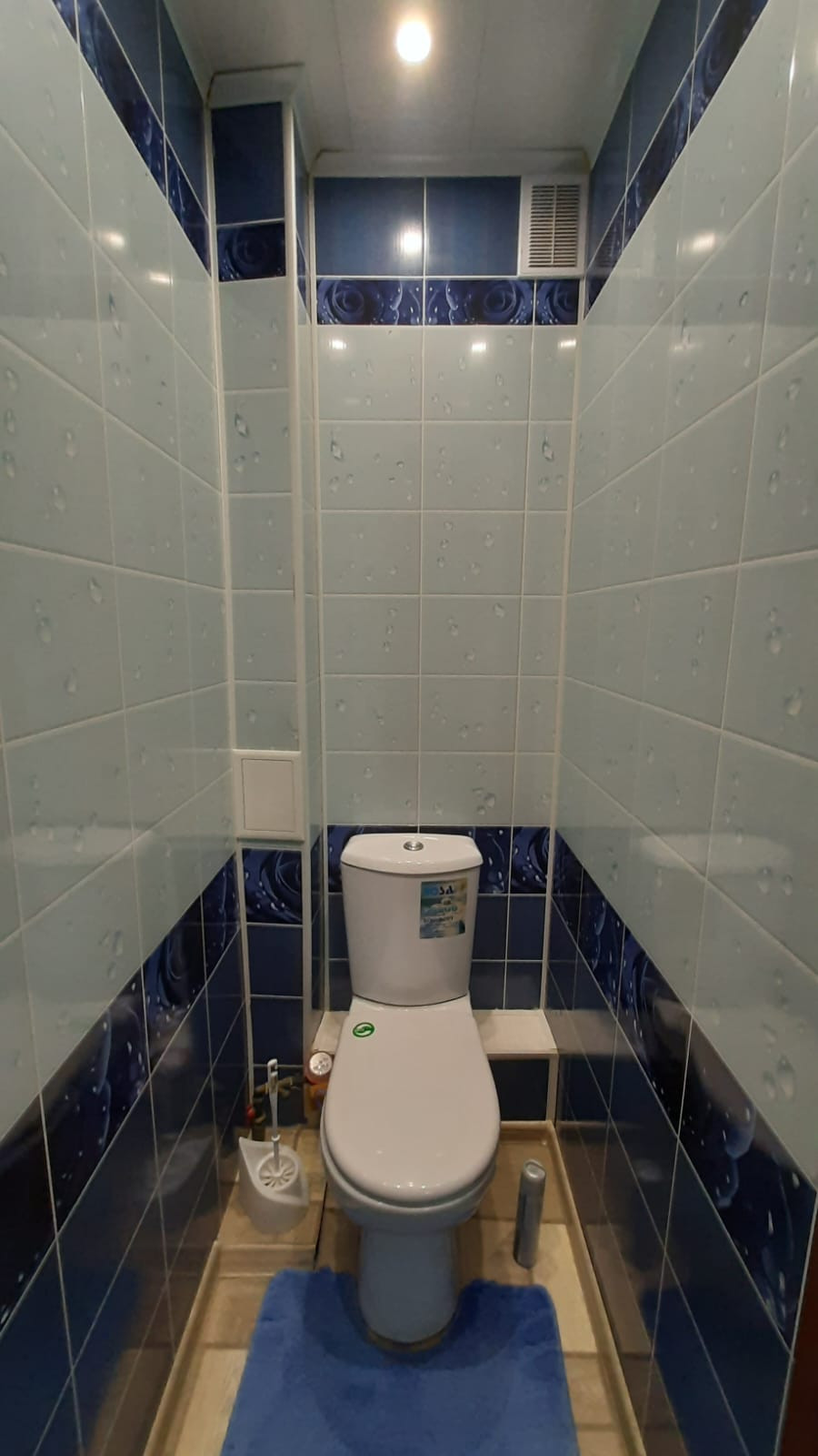 Санузел раздельный, полностью выложен кафельной плиткой, установлена ванна, сантехника в отличном состоянии, есть счетчики на воду.