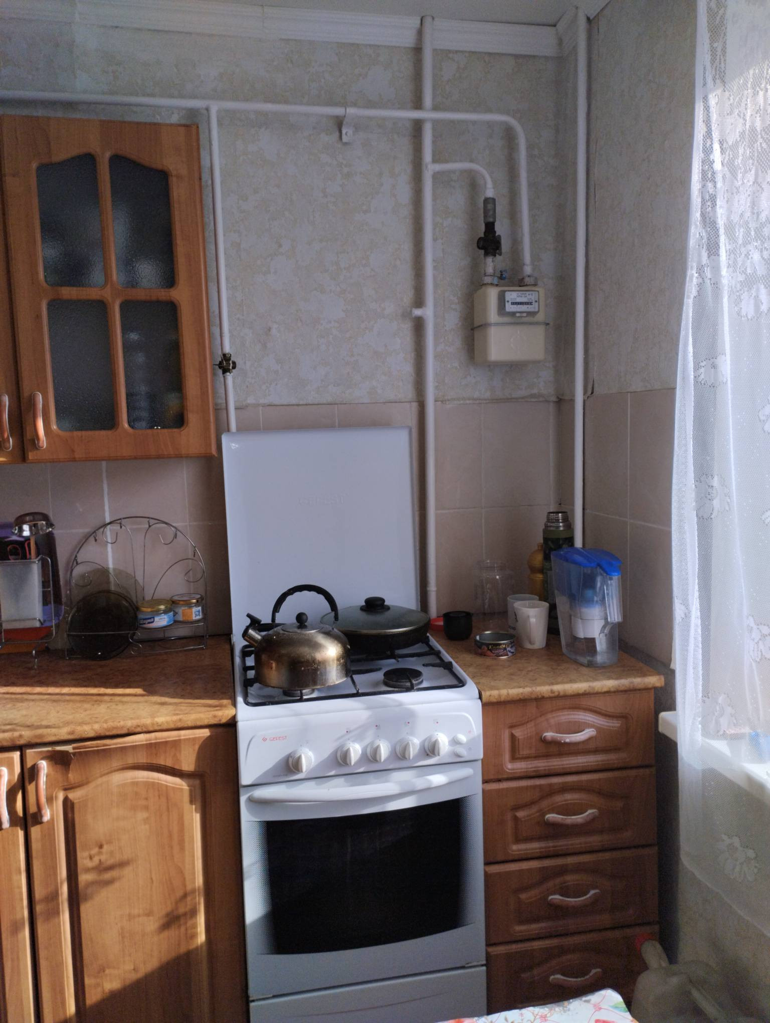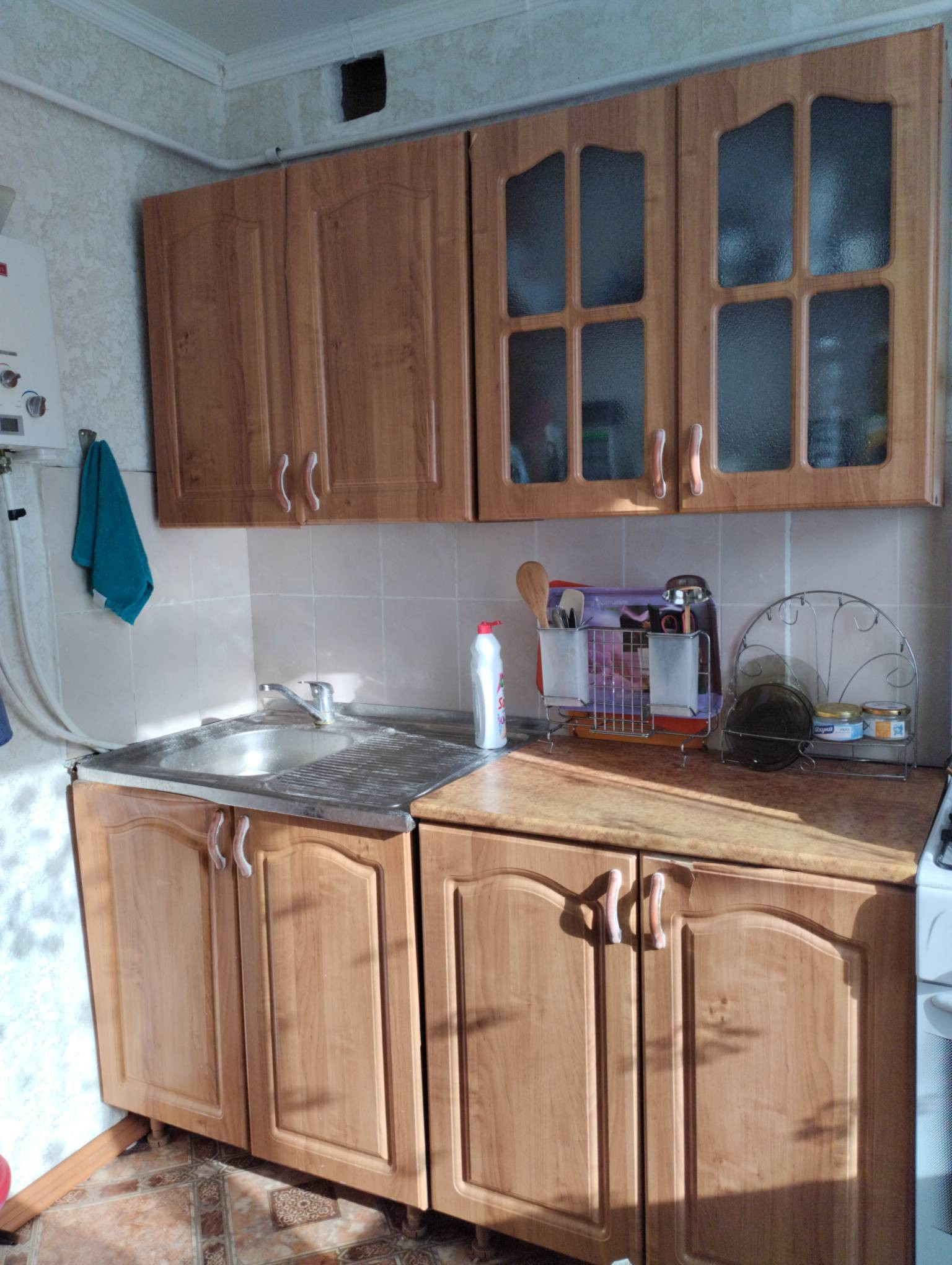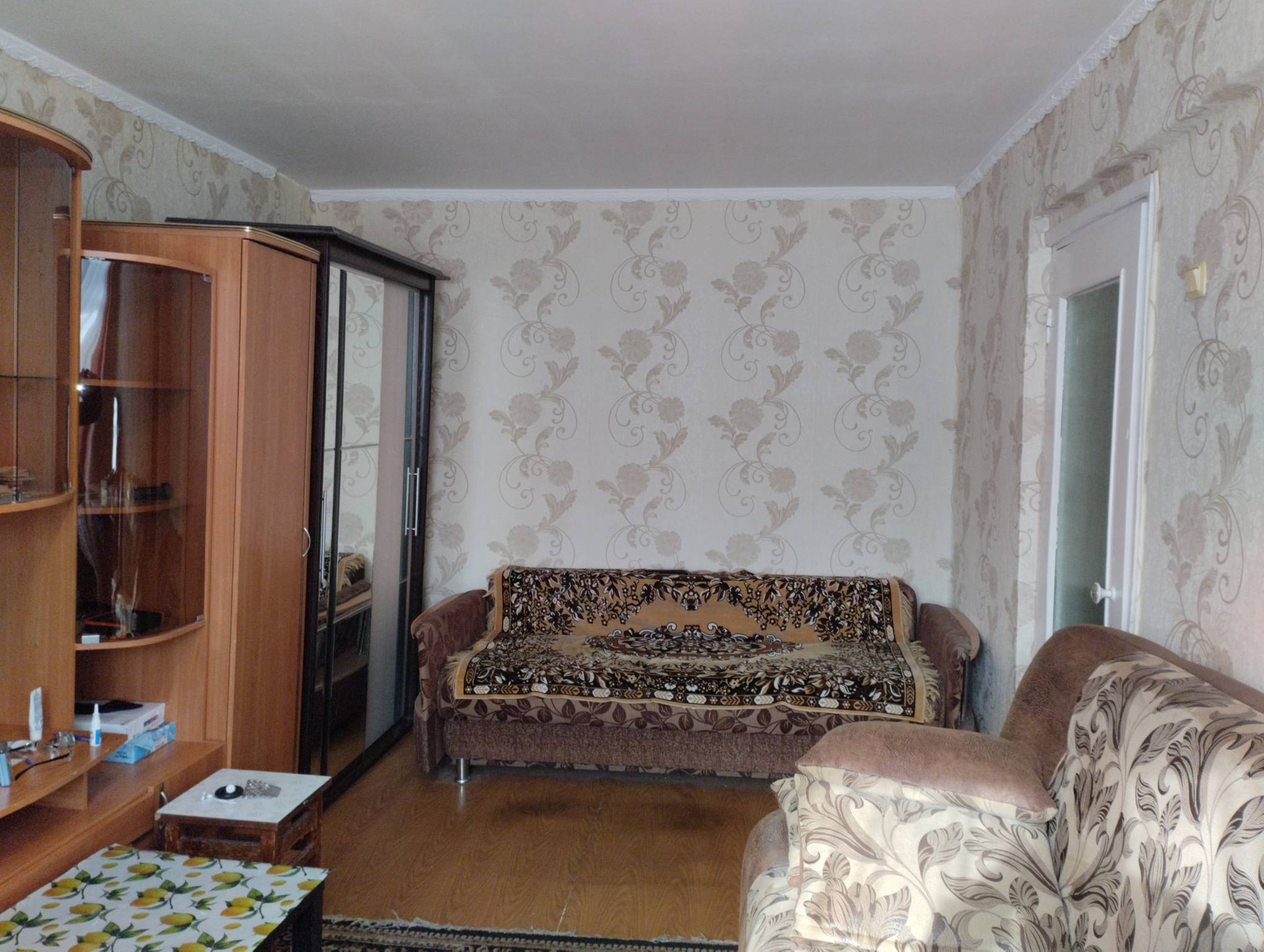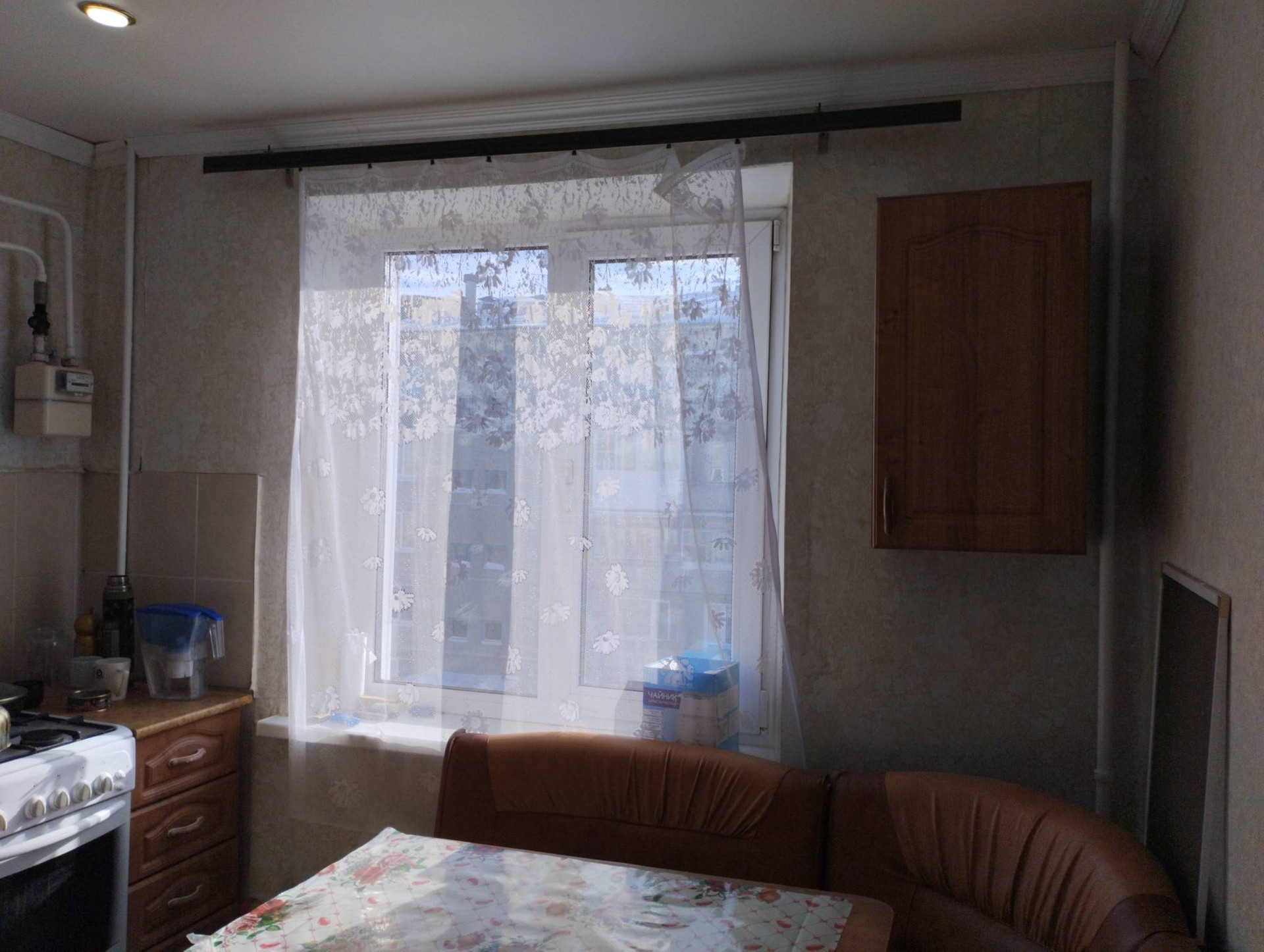 В г. Калачинск на чистой срочной продаже, ухоженная квартира, в доме «омской серии», не угловая, солнечная сторона, окна ПВХ, балкон, санузел совмещен, заменена сантехническая арматура, счетчики воды и газа. Новому хозяину остается: кухонный гарнитур с обеденной зоной, шкаф в прихожей, корпусная мебель, диван в комнате.