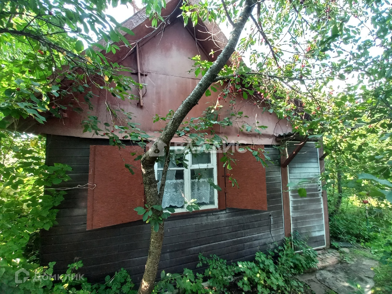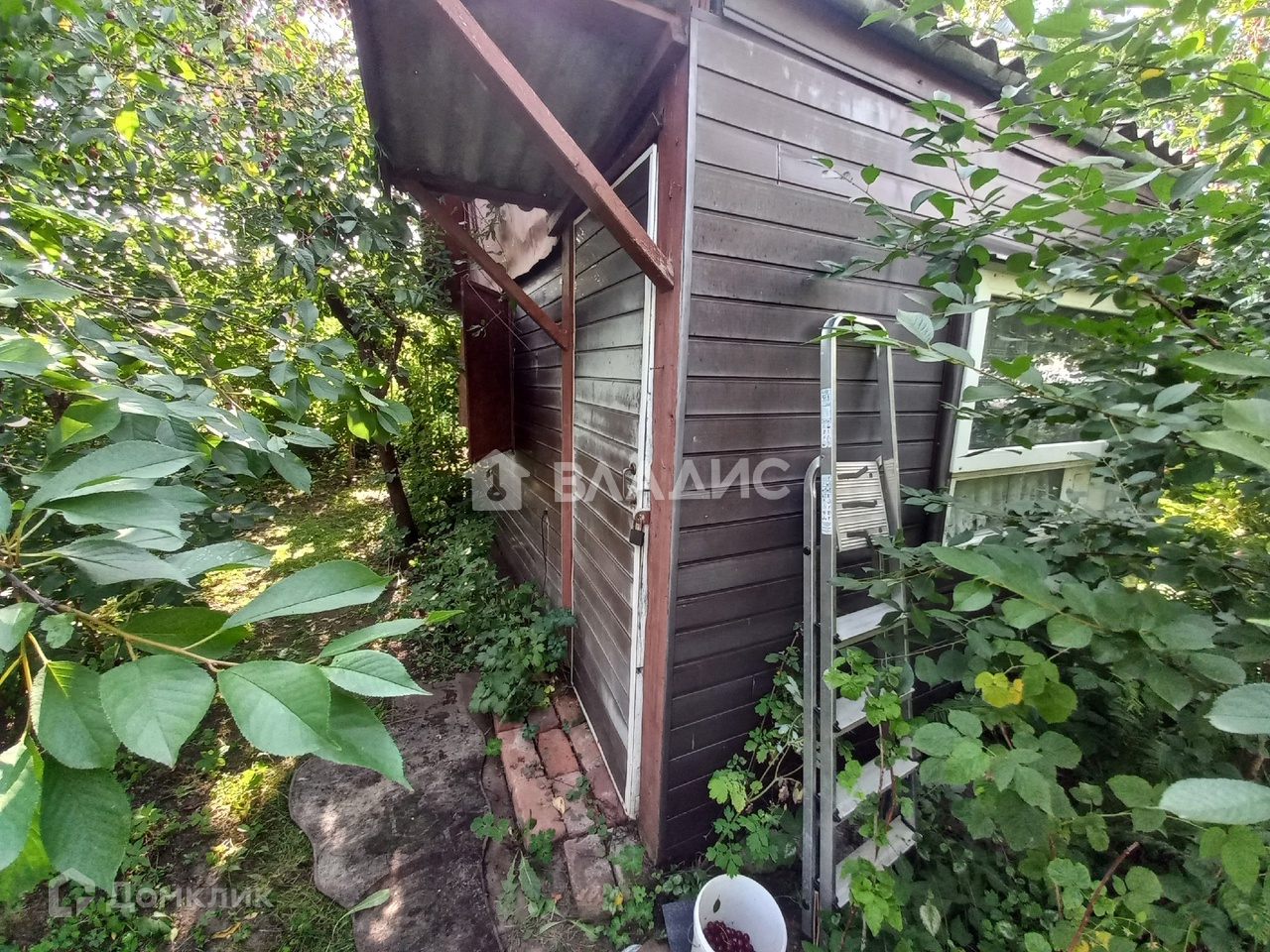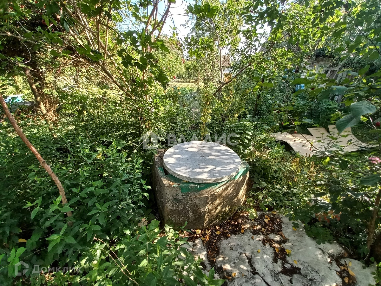 - колодец, плодовые деревья, много вишнен, слива, малина, яблоня.