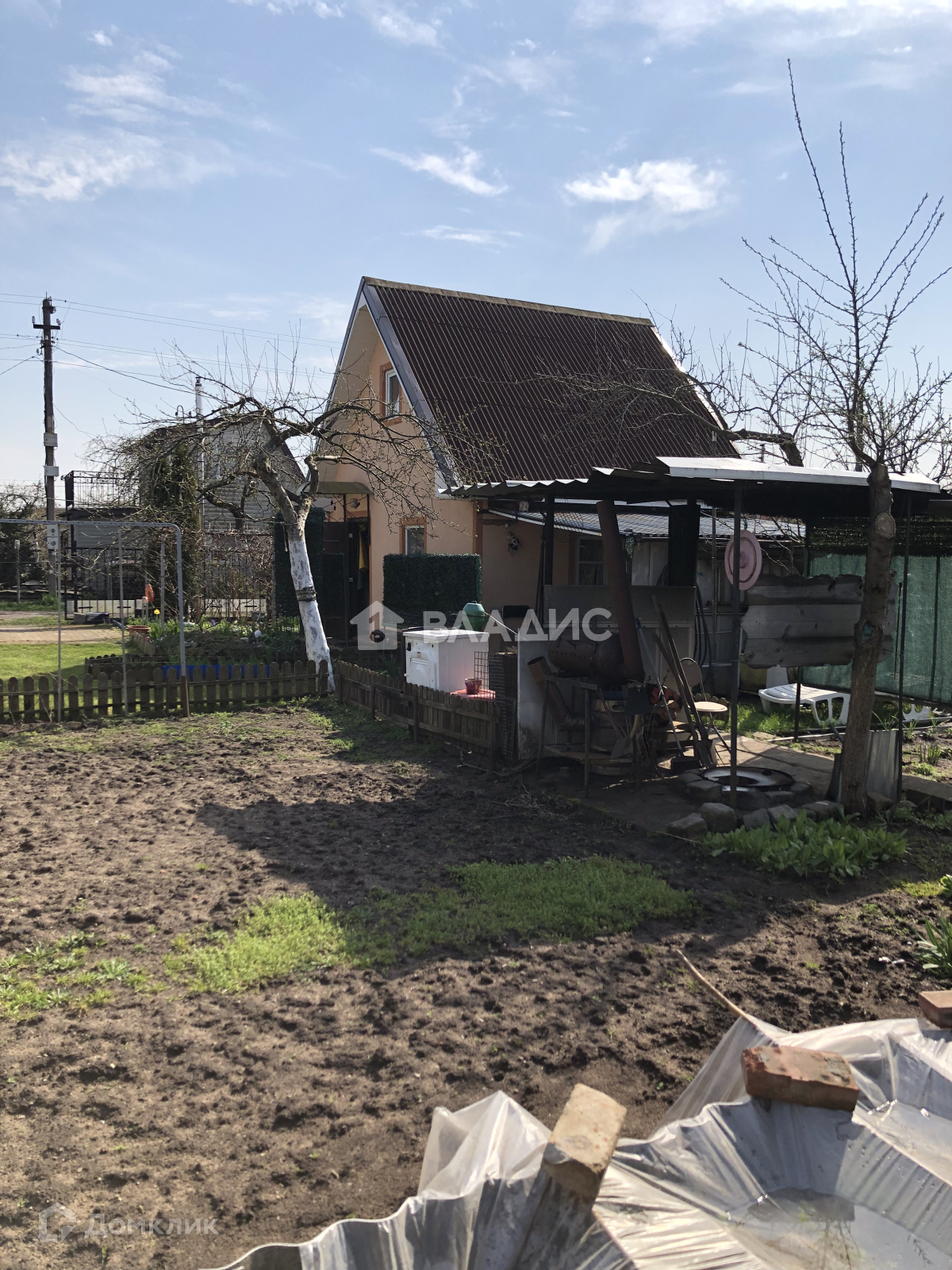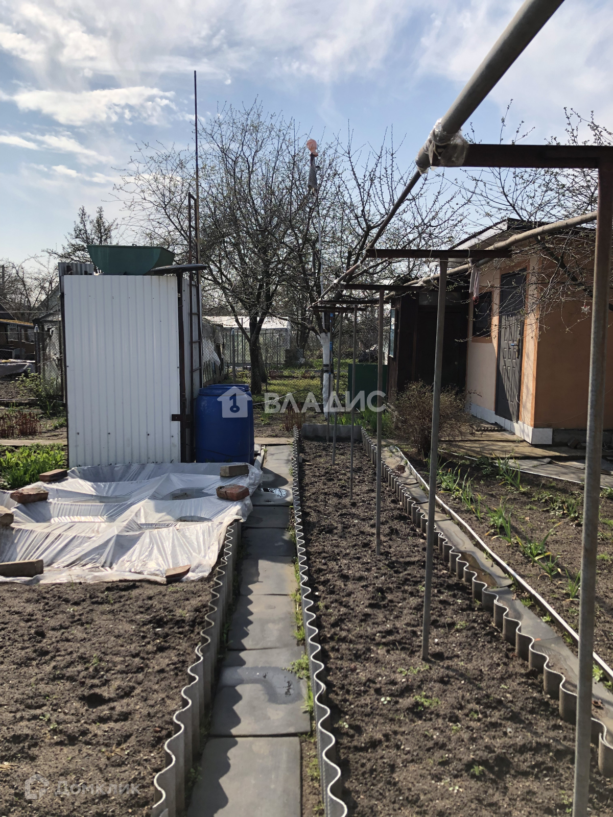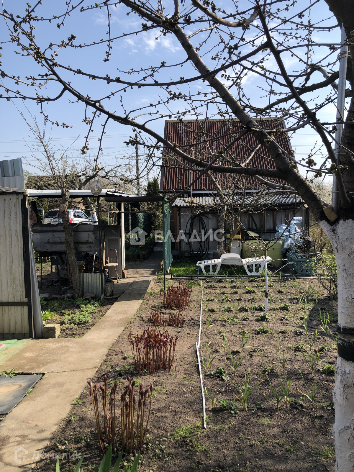 На участке плодовые деревья:  4 яблони, виноград, смородина, крыжовник, черешня, вишня, слива.