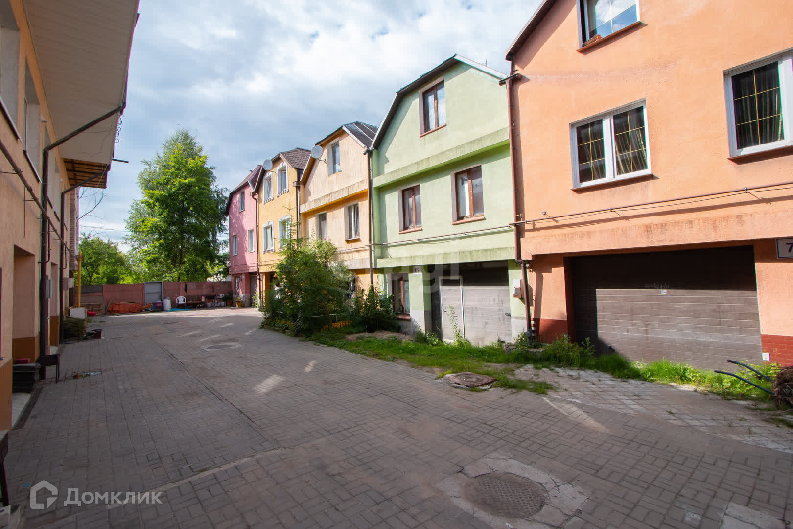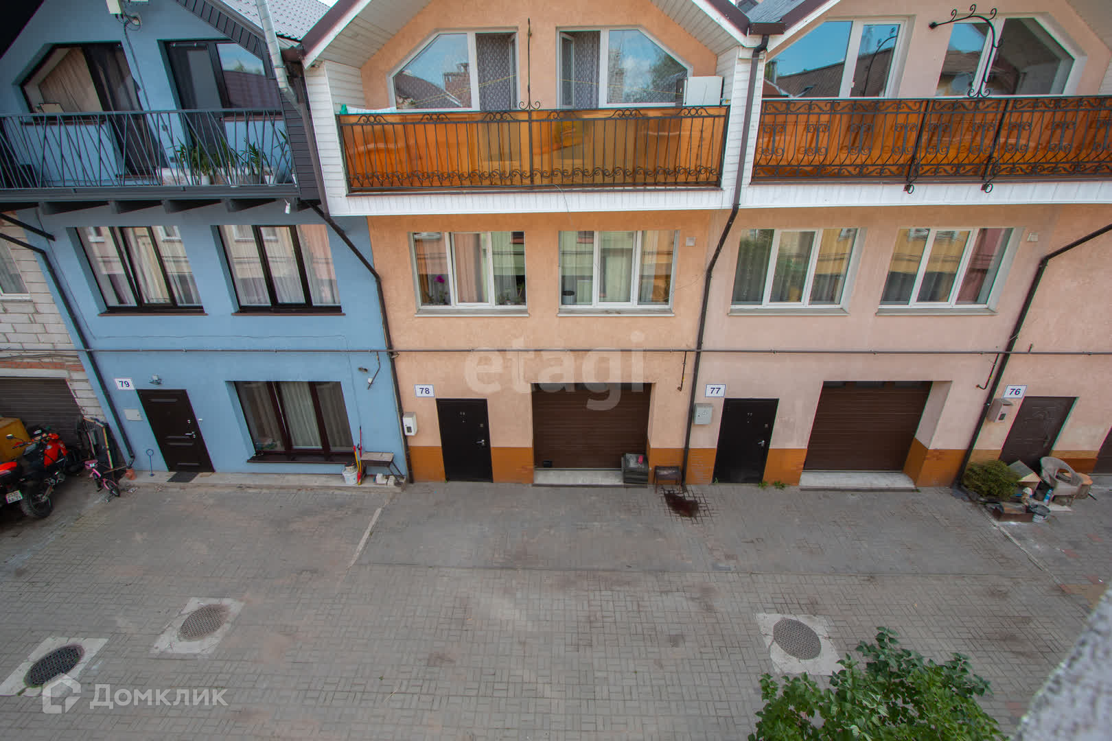 Улица уложена плиткой. Фасад дома утеплён и лежит штукатурка.