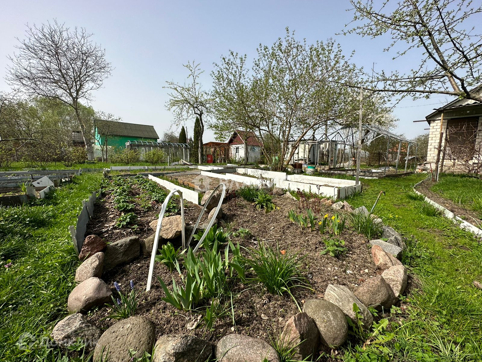 - теплицы, есть плодово-ягодные насаждения (калина, виноград, смородина, клубника).