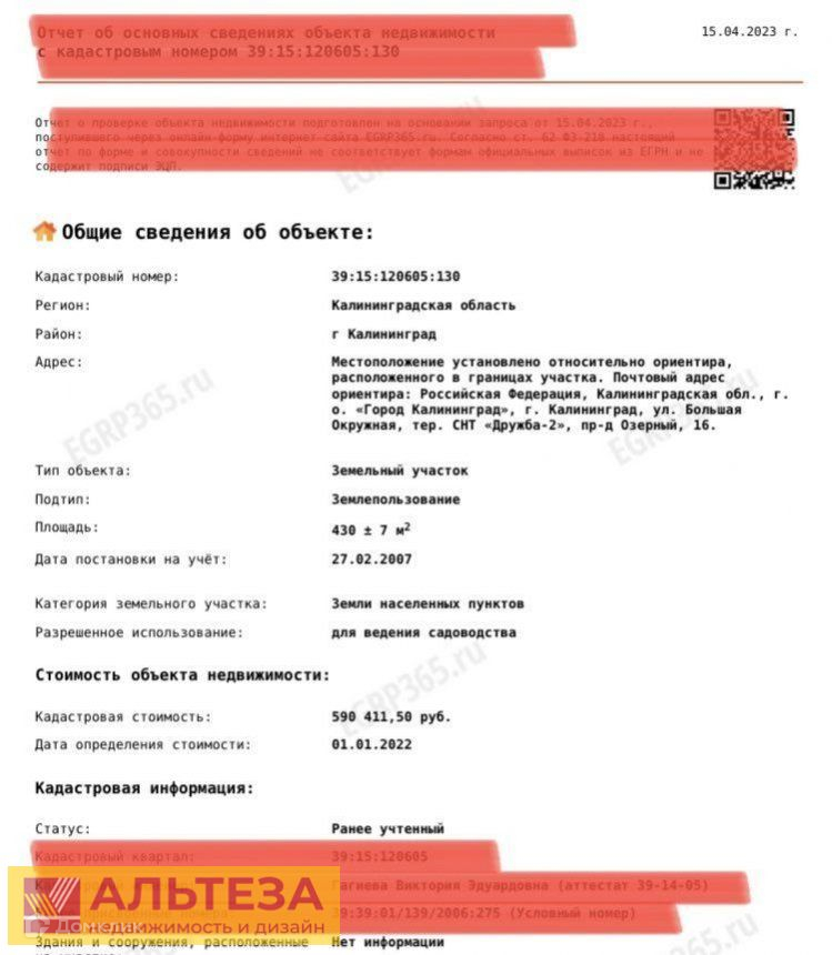 Стоимость недвижимости: