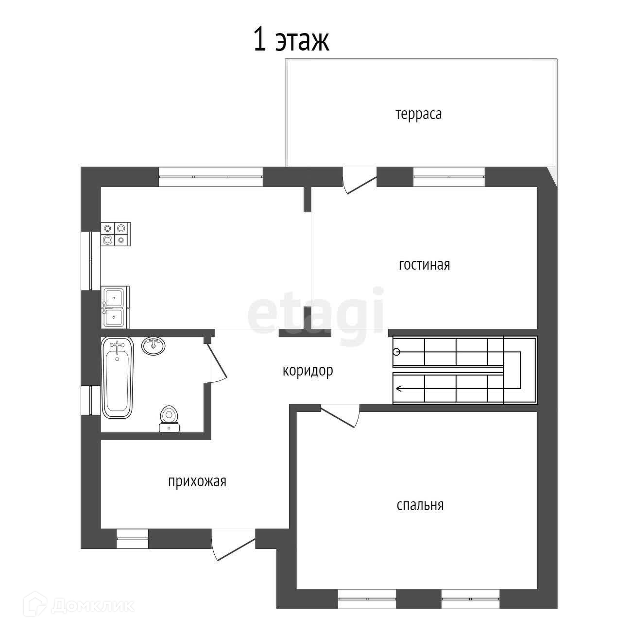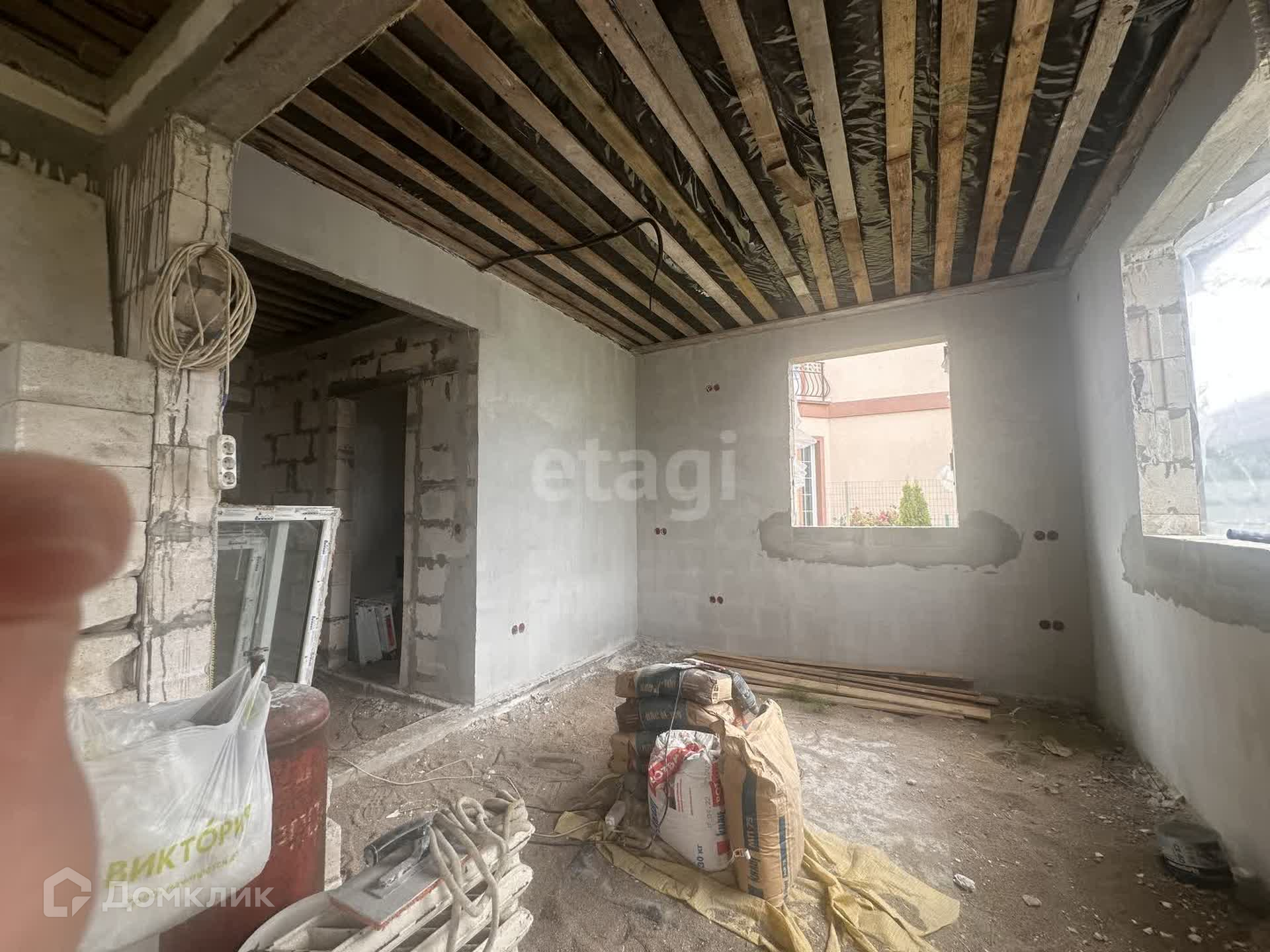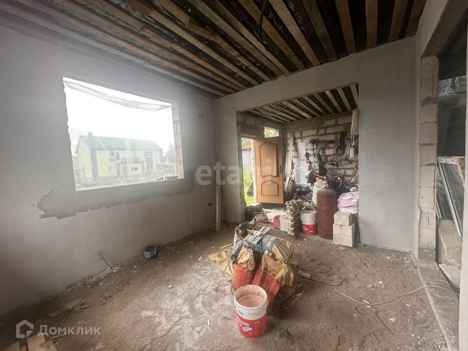1 этаж: находится кухня и гocтиная, прихожая,санузел ( стены оштукатурены)