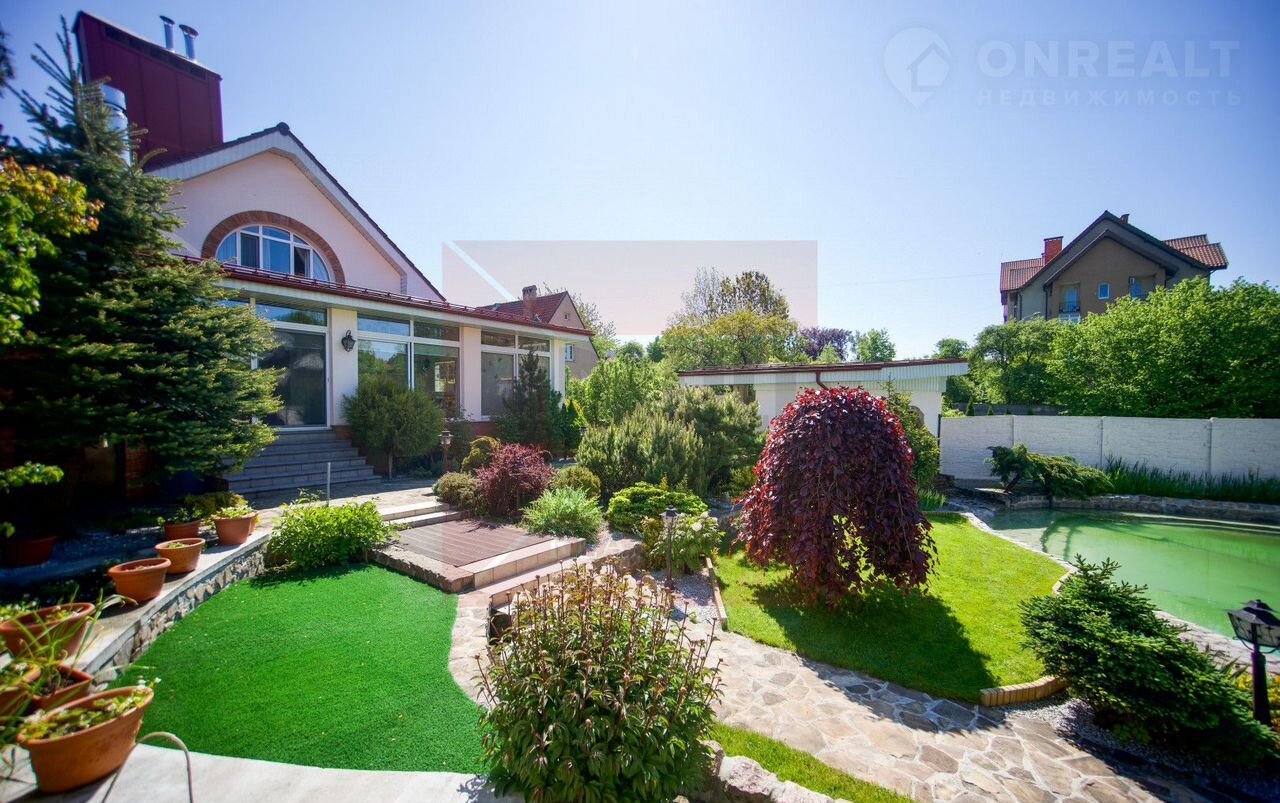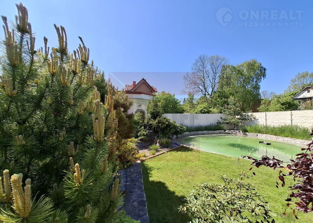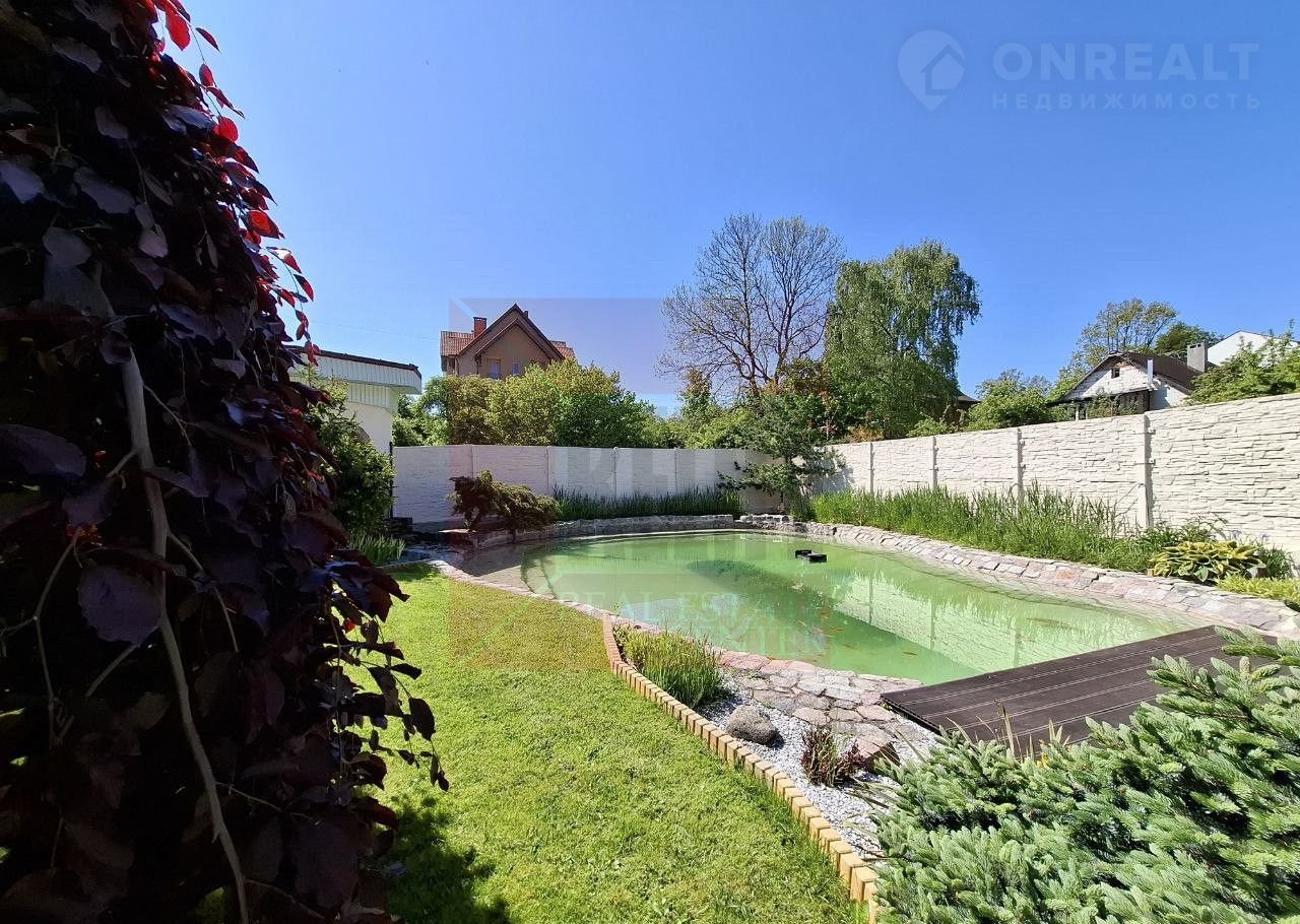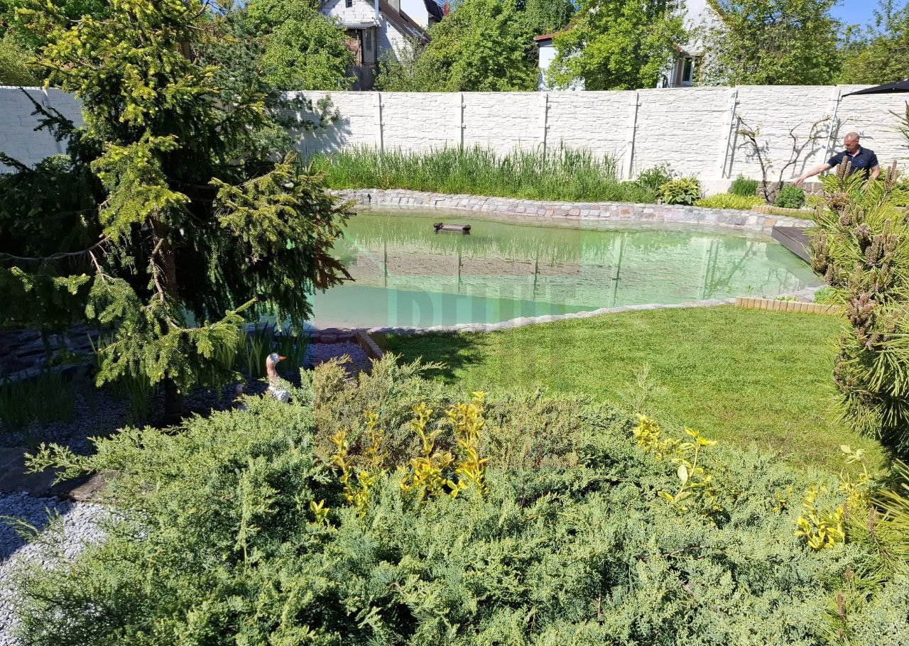 Дом расположен на земельном участке площадью 11,42 соток, где выполнен изысканный ландшафтный дизайн. Природа и человек здесь становятся единым целым. Огромное количество хвойных деревьев наполняет воздух фитонцидами, которые снимают усталость, улучшают самочувствие и поднимают настроение. Цветники с уникальными растениями, фруктовый сад, тихий водопад и пруд с золотыми рыбками создают неповторимый оазис, где можно почувствовать единение с природой и насладиться её красотой.