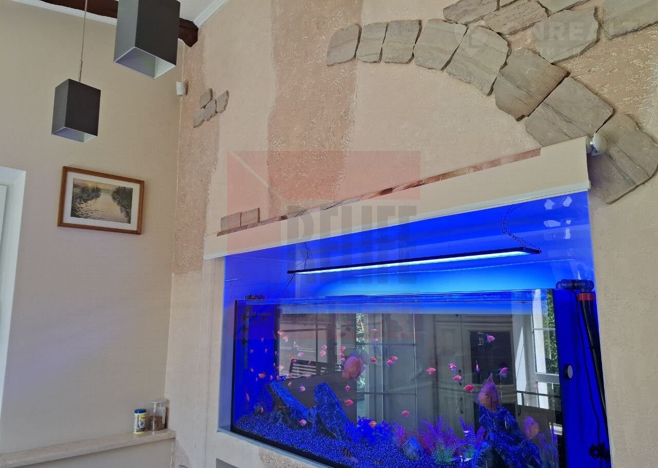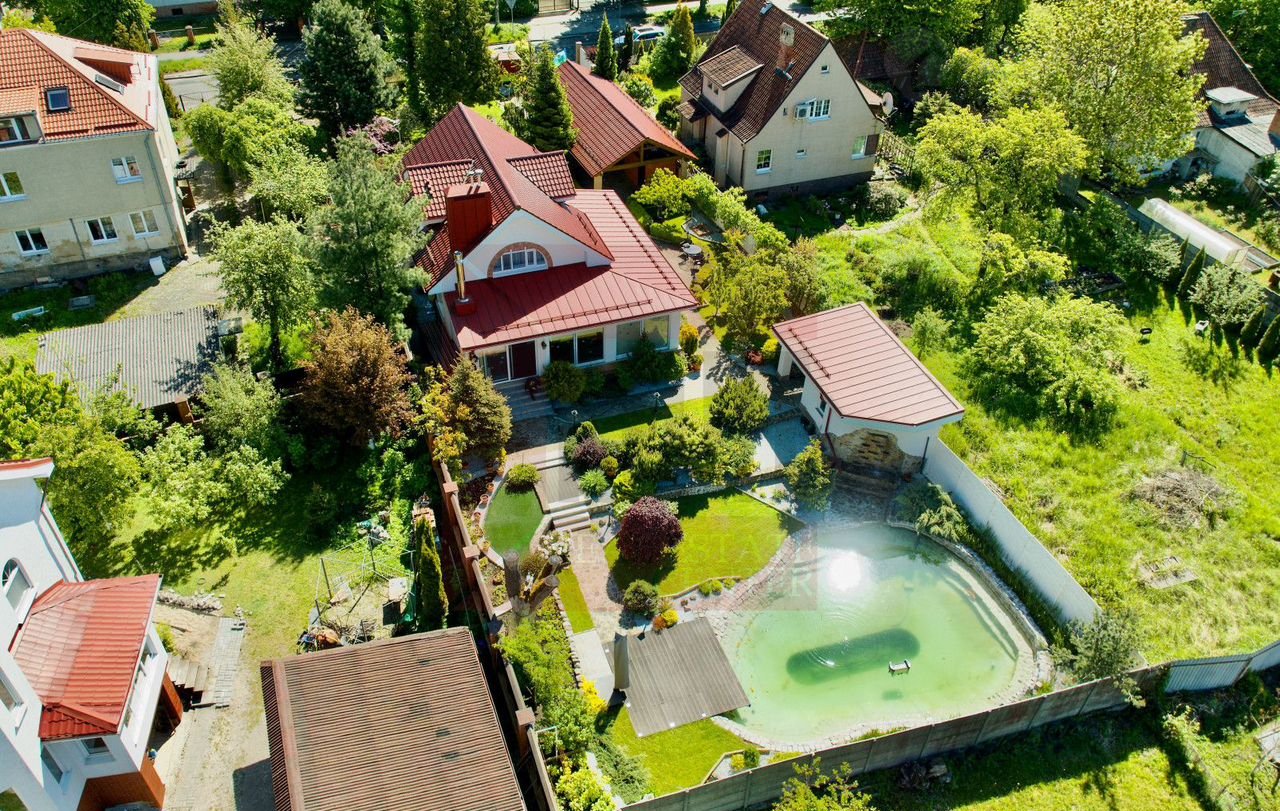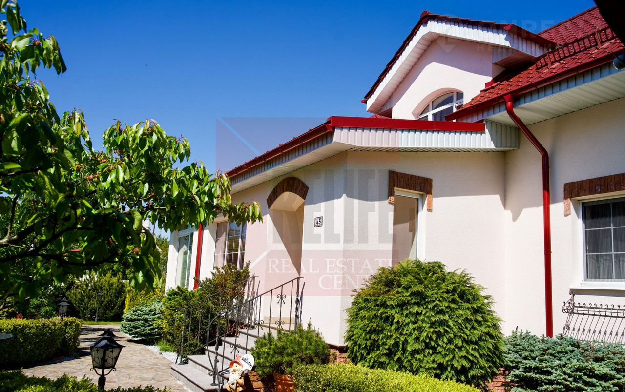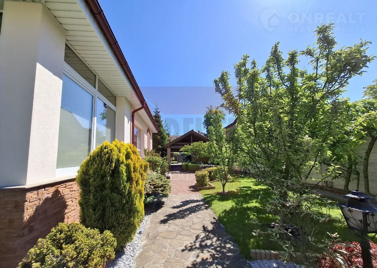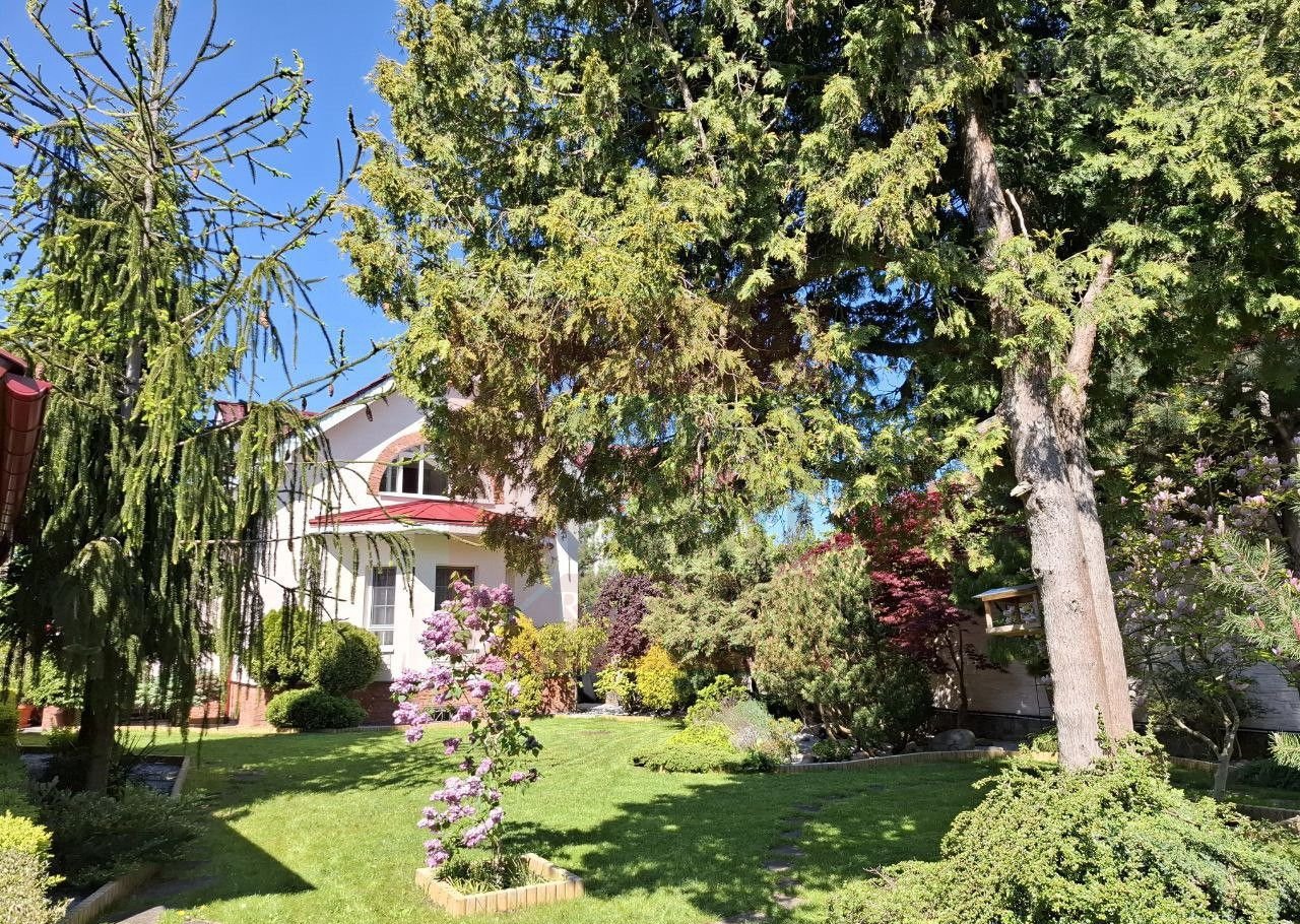 Дом расположен на земельном участке площадью 11,42 соток, где выполнен изысканный ландшафтный дизайн. Природа и человек здесь становятся единым целым. Огромное количество хвойных деревьев наполняет воздух фитонцидами, которые снимают усталость, улучшают самочувствие и поднимают настроение. Цветники с уникальными растениями, фруктовый сад, тихий водопад и пруд с золотыми рыбками создают неповторимый оазис, где можно почувствовать единение с природой и насладиться её красотой.