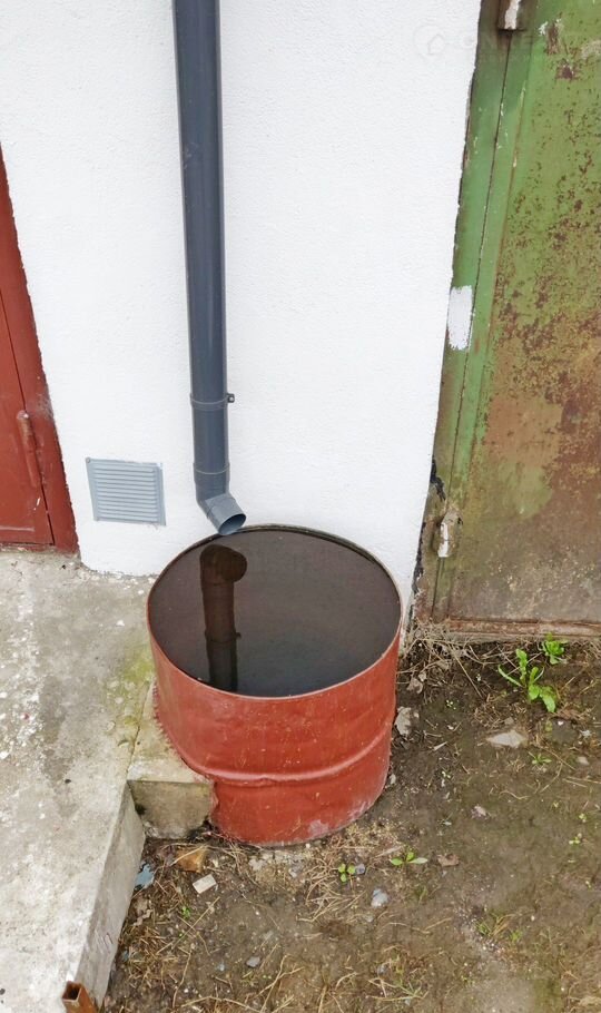 - перед гаражом бетонная отмостка, есть бочка для сбора дождевой воды