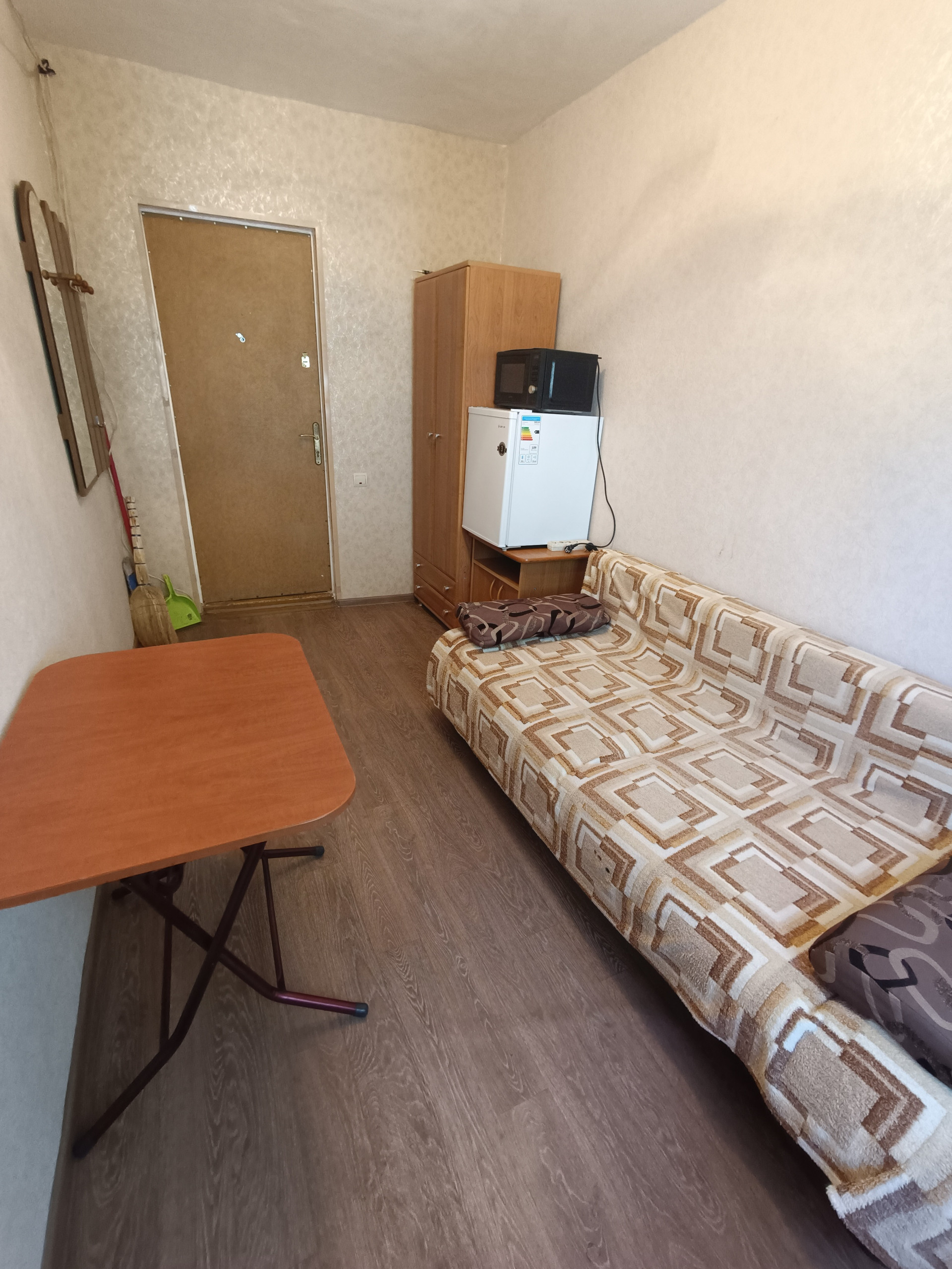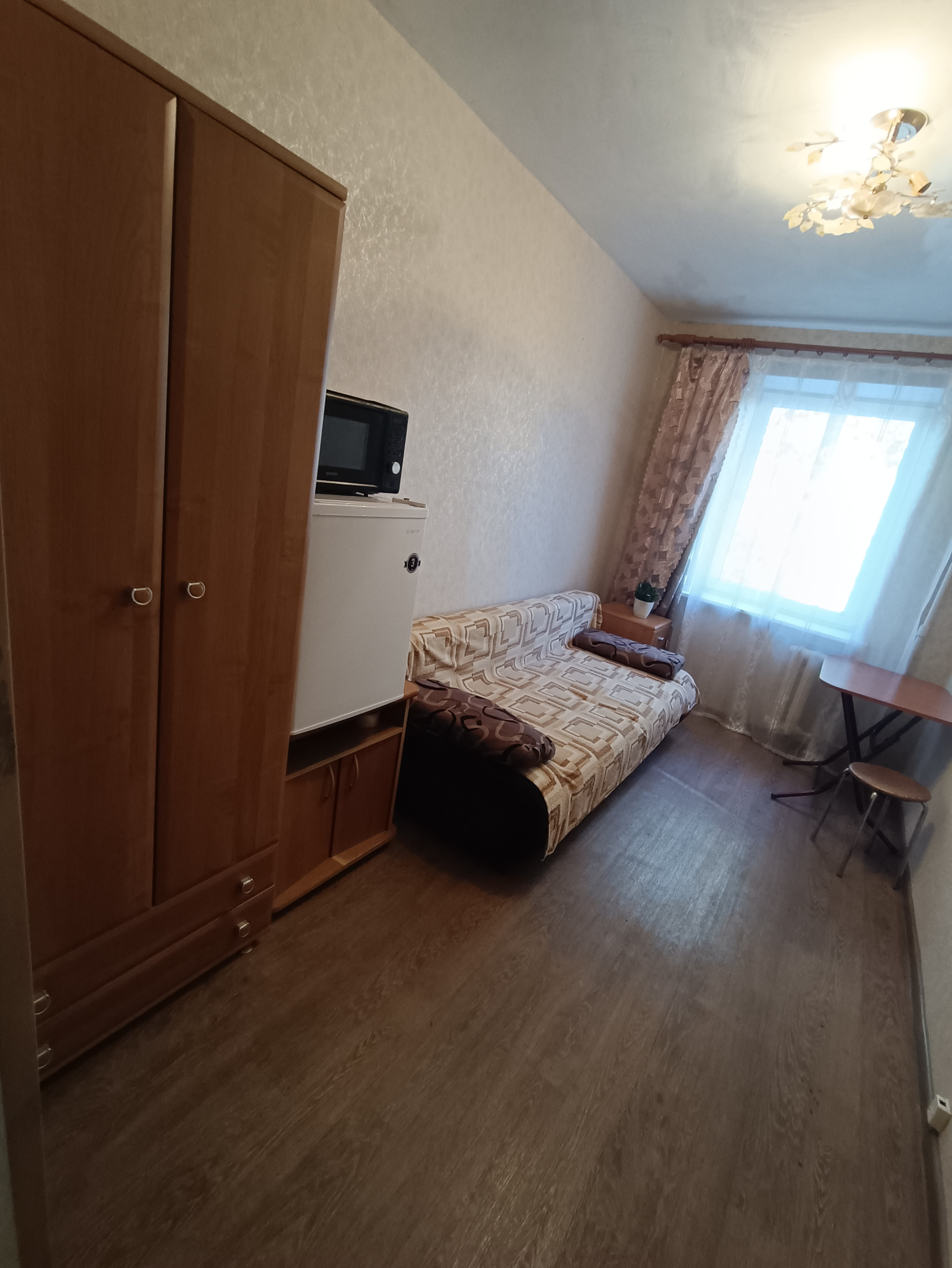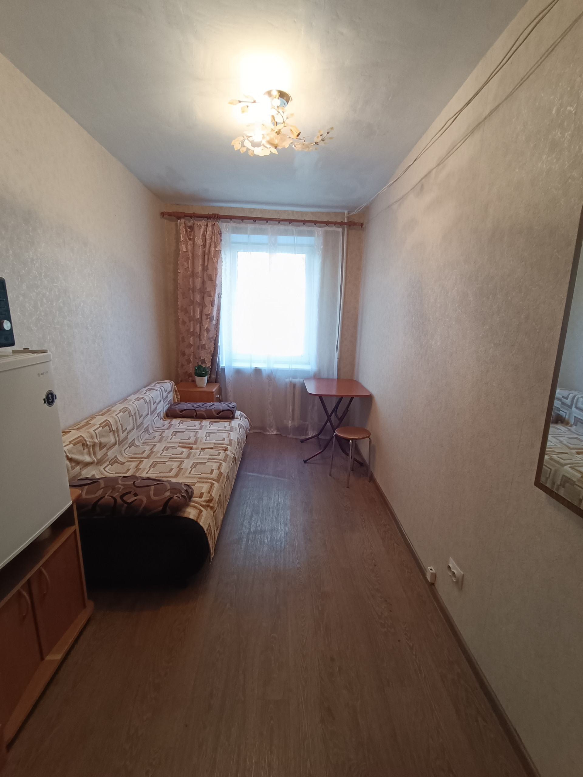 Выполнен косметический ремонт, комната обставлена - есть все для комфортного проживания, установлена металлическая дверь, аккуратные места общего пользования.Главное преимущество 4 ого этажа - свой собственный душ! Шкаф и Плита на кухне, есть собственная стиральная машина, аккуратный коридор,дружелюбные соседи, отличный вид из окна.