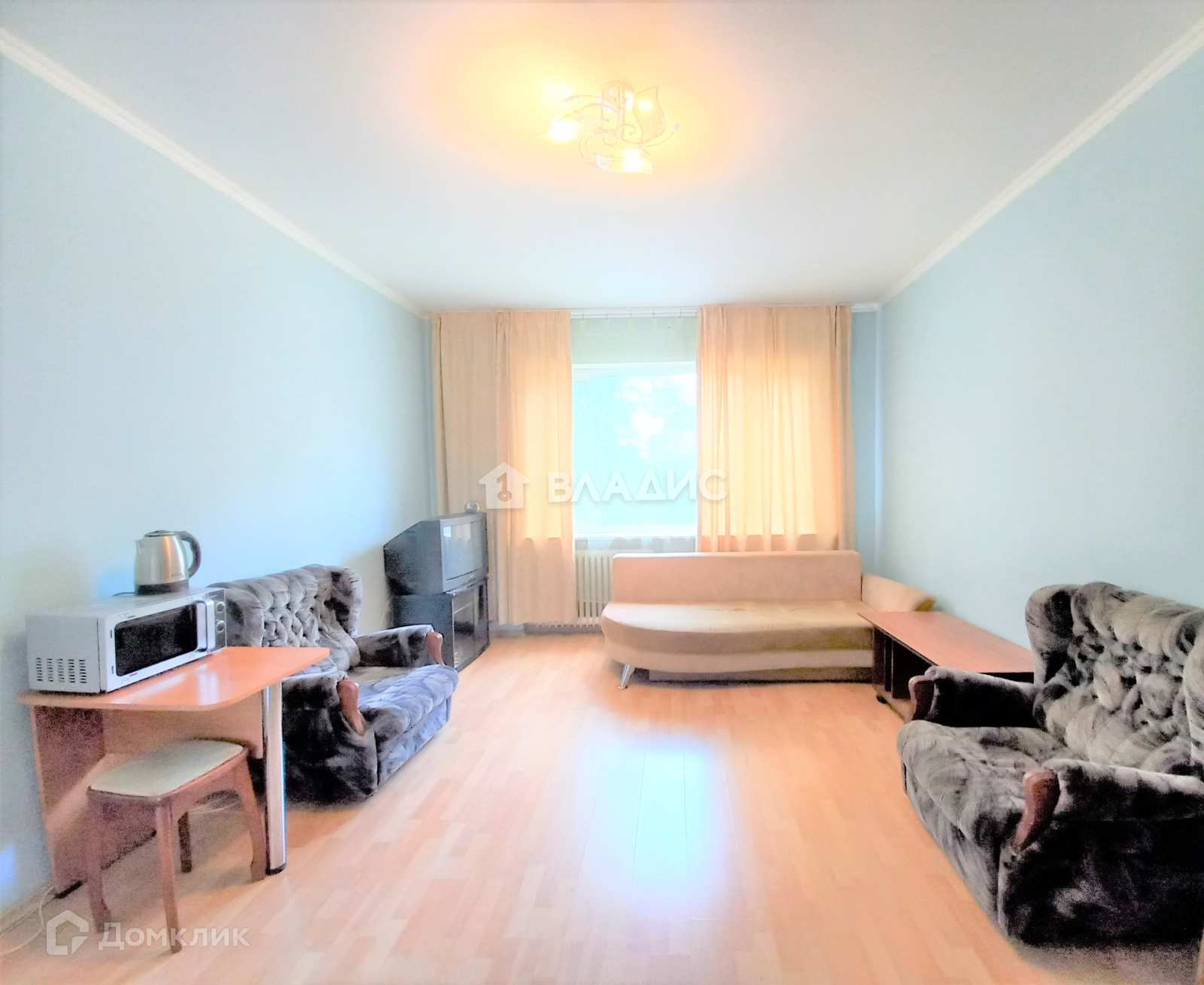 - мебель: 2-спальный диван, шкаф, 2 кресла, трюмо с зеркалом, журнальный столик, тумба под телевизор, компьютерный столик;