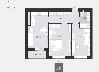Продажа двухкомнатной квартиры, 55.3 м2