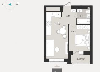 Однокомнатная квартира на продажу, 34.3 м2
