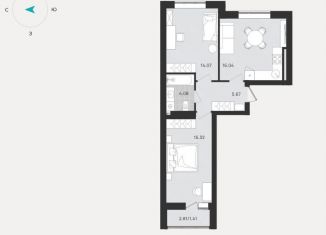 Двухкомнатная квартира на продажу, 59.6 м2