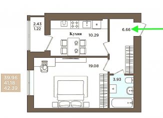Продаю 1-комнатную квартиру, 41.8 м2