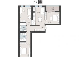 3-комнатная квартира на продажу, 80.9 м2
