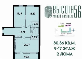 Продажа двухкомнатной квартиры, 79.1 м2, Солдатская улица, 9к4