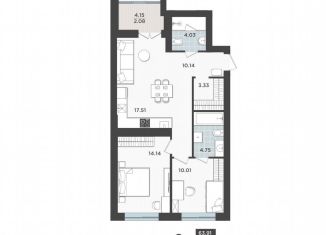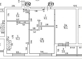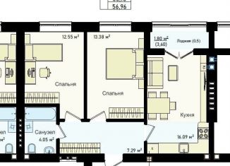 Двухкомнатная квартира на продажу, 56.4 м2