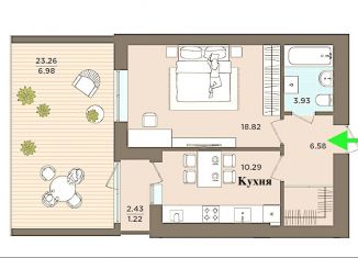 2-комнатная квартира на продажу, 58.6 м2, Киевская улица, 118А