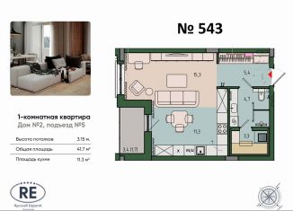 Продам 1-комнатную квартиру, 43.1 м2, Артиллерийская улица, 87