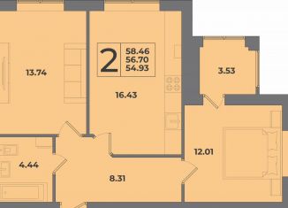 2-комнатная квартира на продажу, 54.9 м2, Иркутская улица, 6