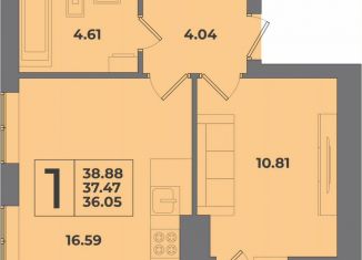 Продается однокомнатная квартира, 37.2 м2, улица Согласия, 36