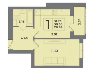 1-комнатная квартира на продажу, 30.4 м2