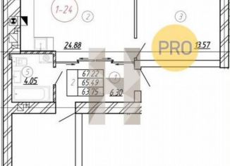 Продажа 2-комнатной квартиры, 65.5 м2