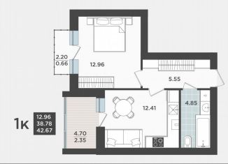 Продается однокомнатная квартира, 41.6 м2