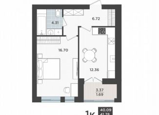 Продается 1-комнатная квартира, 41.1 м2