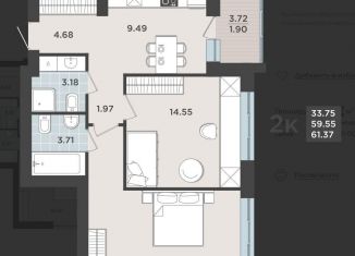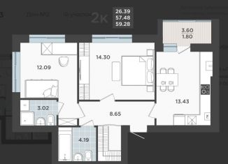 Продажа 2-комнатной квартиры, 59.6 м2