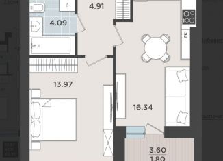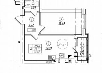 Однокомнатная квартира на продажу, 41.1 м2