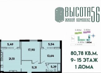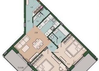 Двухкомнатная квартира на продажу, 77.8 м2