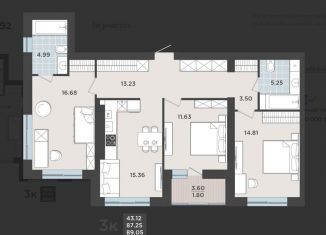 3-комнатная квартира на продажу, 87.3 м2, Арсенальная улица, 31к1