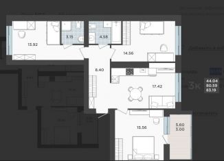 Продается трехкомнатная квартира, 80.6 м2