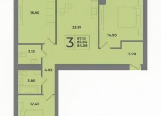 Продается трехкомнатная квартира, 87.4 м2