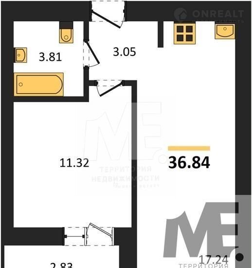 Квартира: 1 к 36,84 кв.м., 8 этаж в комплексе 11 мая, 3 очередь, корп.3, сдача: 2кв. , этажей: 9, адрес Калининград г., Согласия ул., , Застройщик: Модуль-Стройград.
