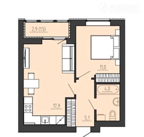 Общая площадь 40.9 м2
