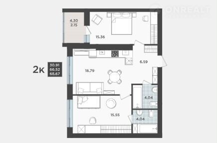 Жилая площадь 30.9 м2