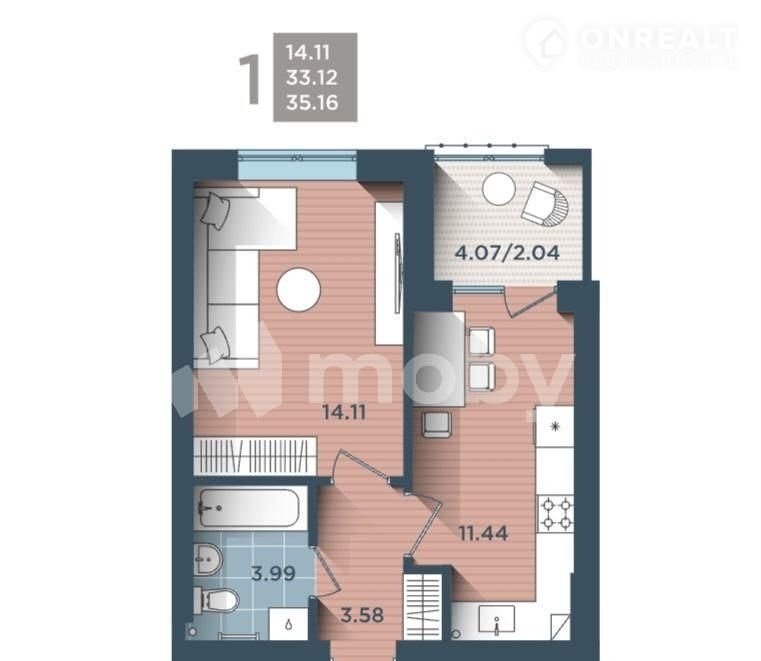 Балкон, лоджия 1 лоджия