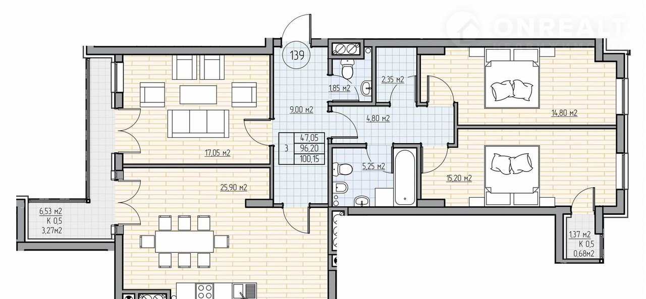 Общая площадь 105.4 м2