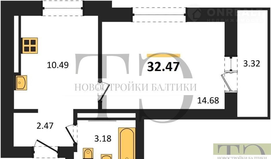 Квартира: 1 к 32,47 кв.м., 7 этаж в комплексе 11 мая, 3 очередь, корп.3, сдача: 2кв. , этажей: 9, адрес Калининград г., Согласия ул., , Застройщик: Модуль-Стройград.