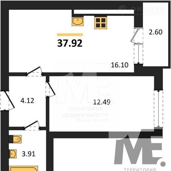 Общая площадь 37.9 м2